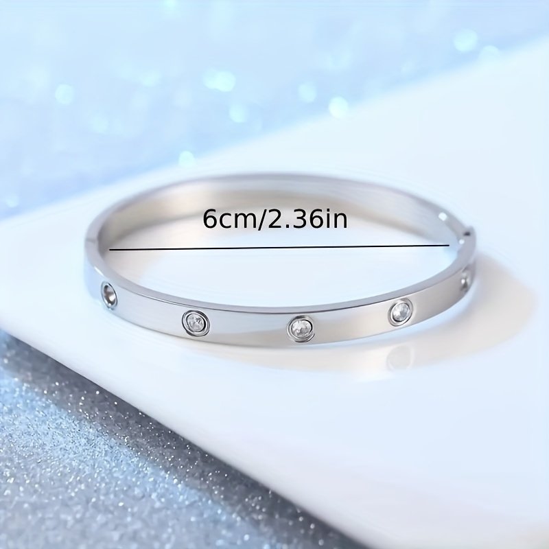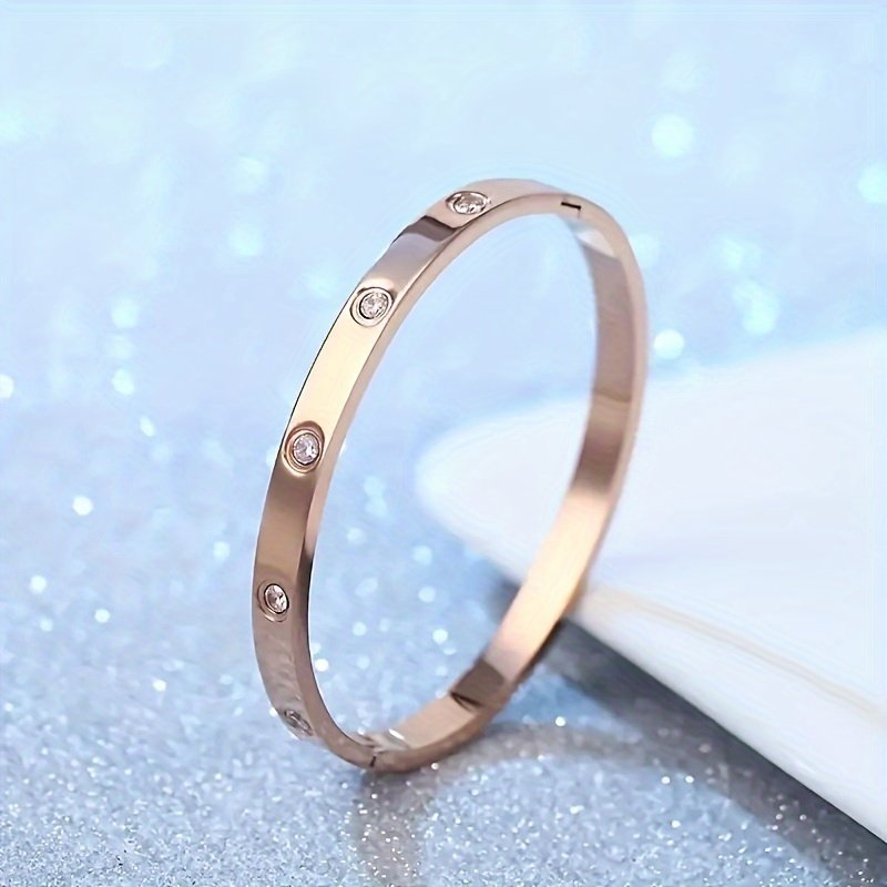 - بريق الزركون الساحر: تألقي بلمعان الماس الطبيعي مع أحجار الزركون الصناعي المختارة بعناية، التي تعكس الضوء ببراعة لتمنح سوارك رونقاً لا يقاوم وتجذب الأنظار.