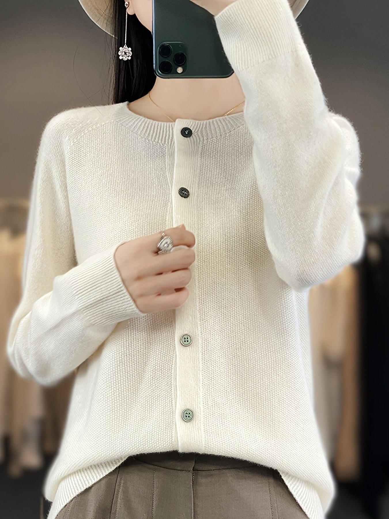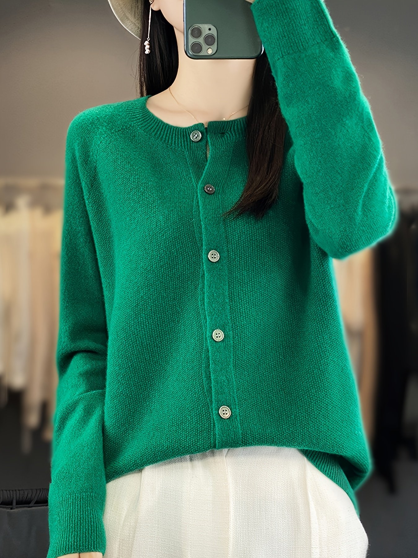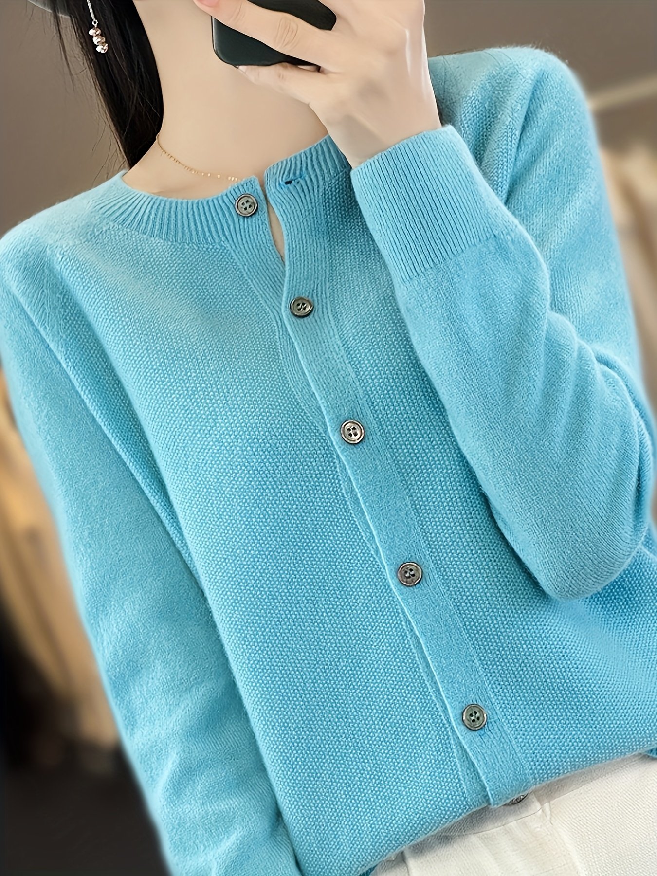 - تصميم بلون موحد كلاسيكي: يمنحكِ هذا الكارديغان أناقة خالدة ويسهل تنسيقه مع مختلف إطلالاتكِ، من الكاجوال اليومي إلى الأكثر رسمية.