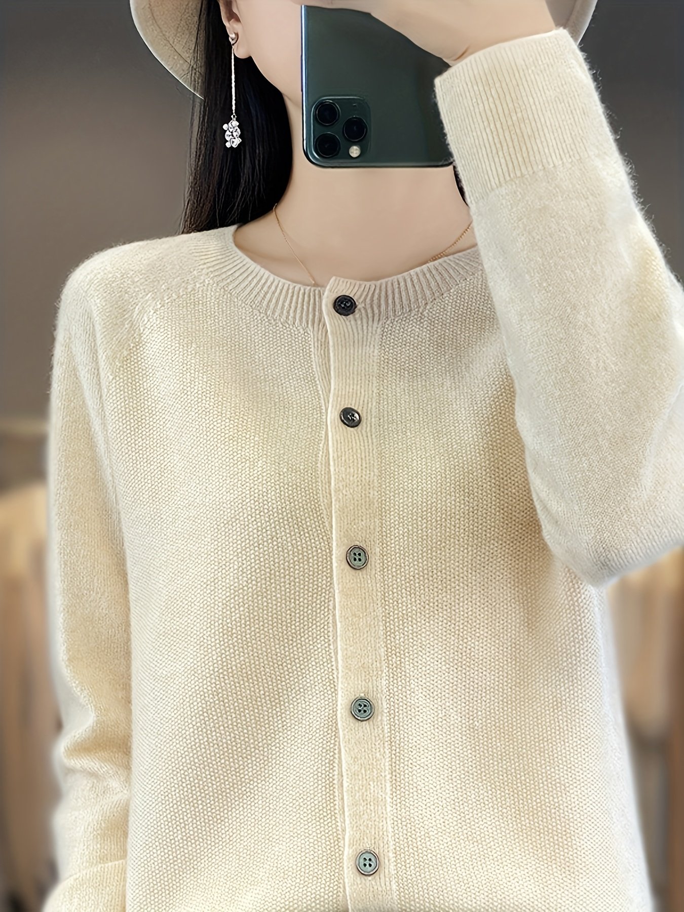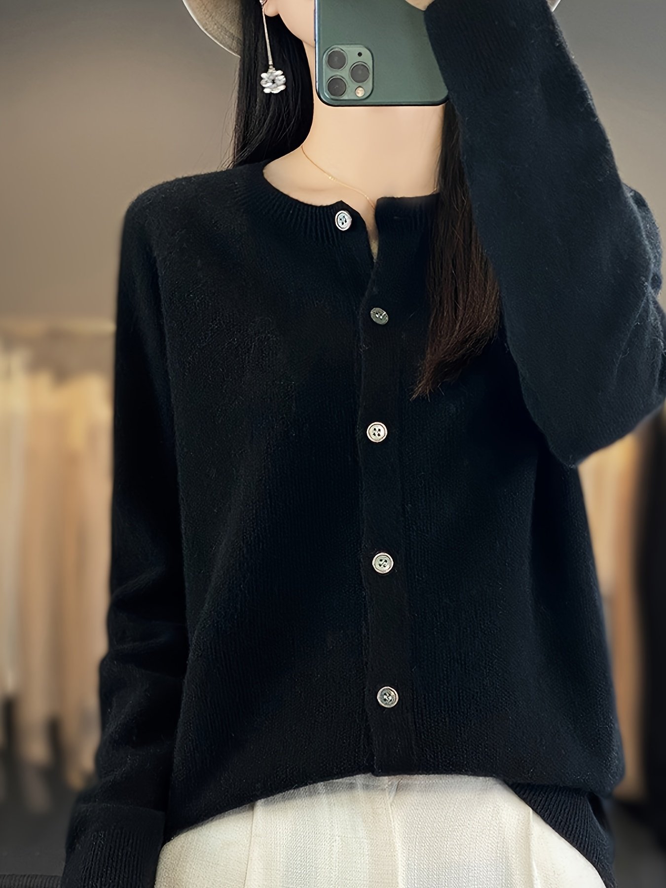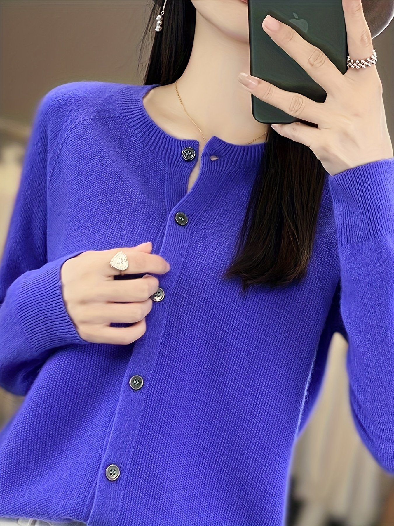 - تصميم بلون موحد كلاسيكي: يمنحكِ هذا الكارديغان أناقة خالدة ويسهل تنسيقه مع مختلف إطلالاتكِ، من الكاجوال اليومي إلى الأكثر رسمية.