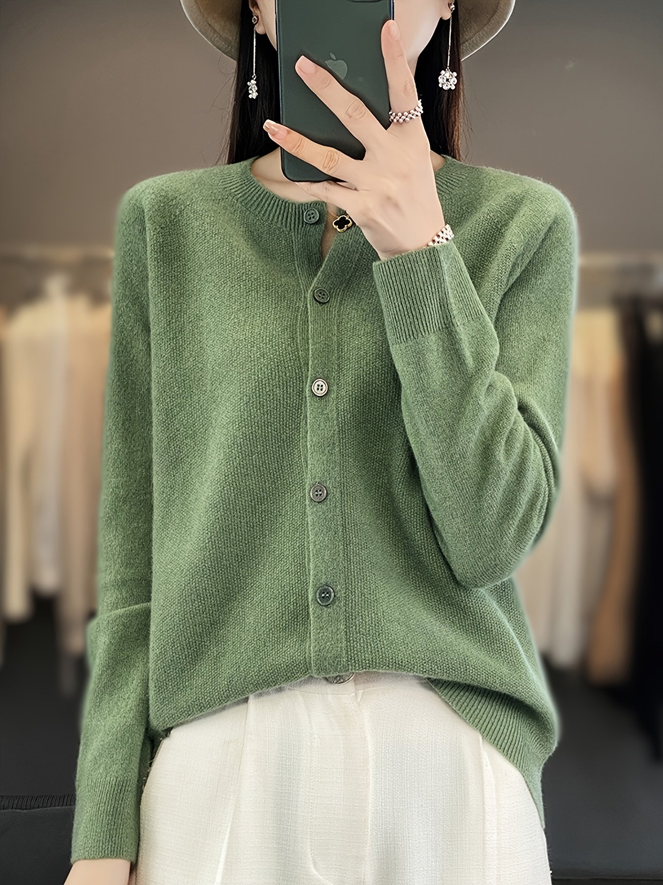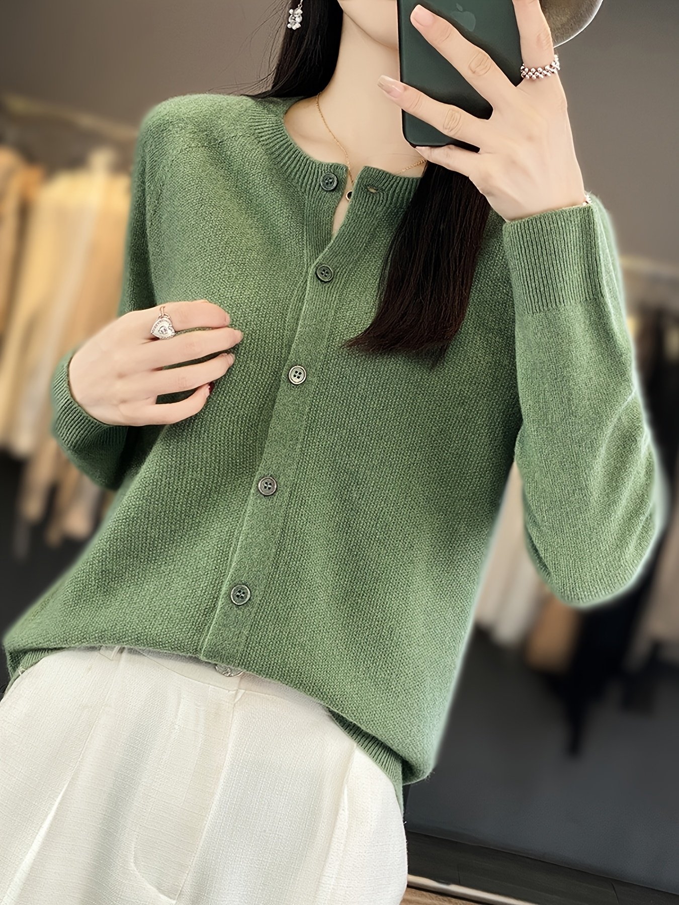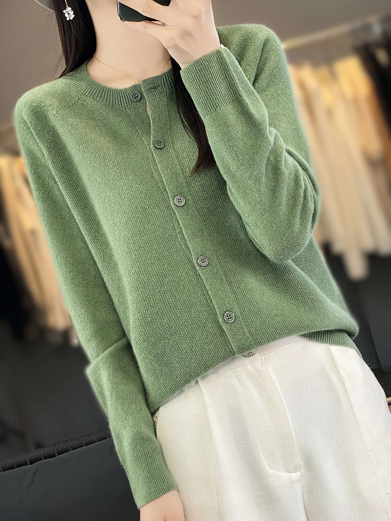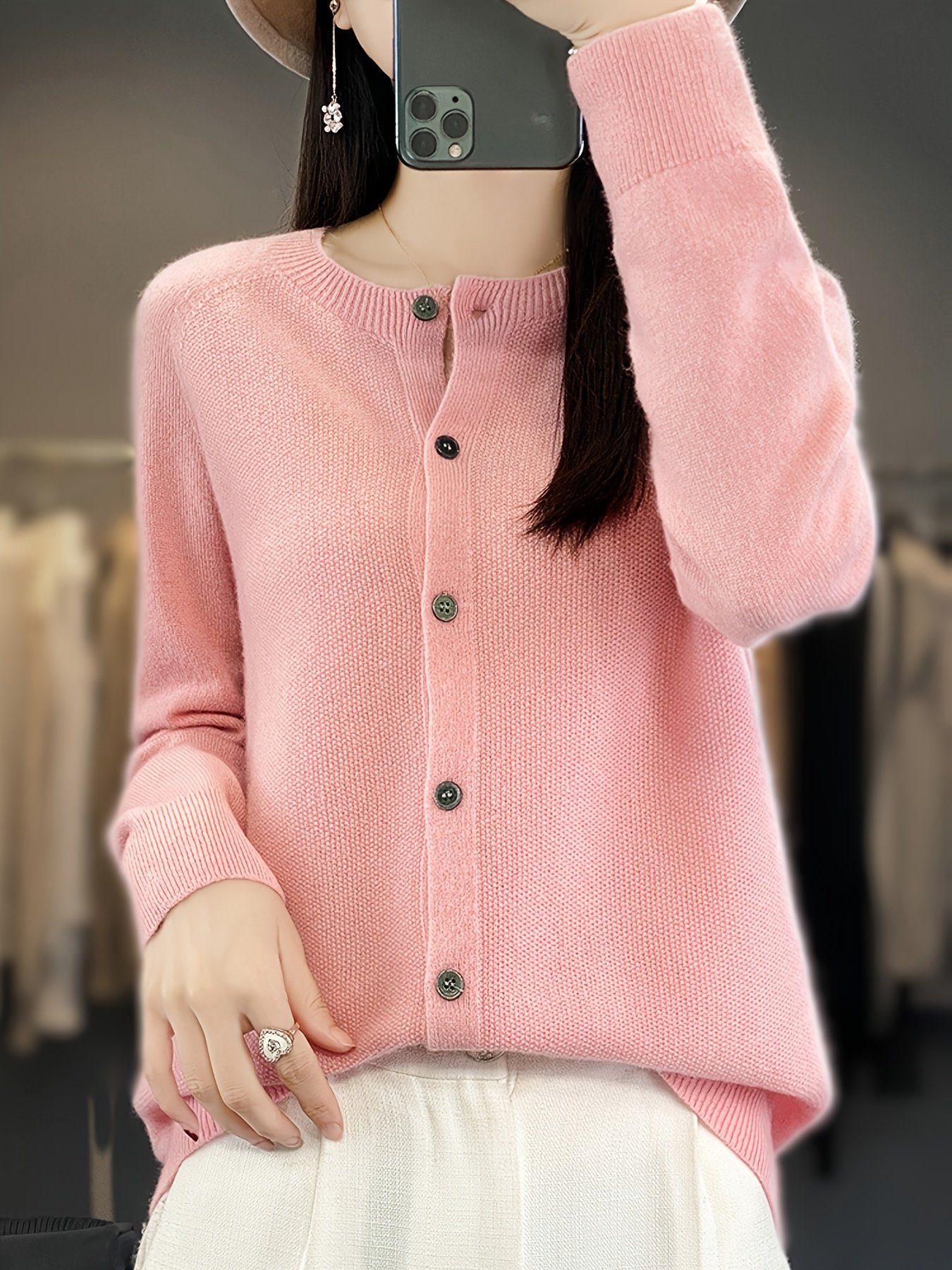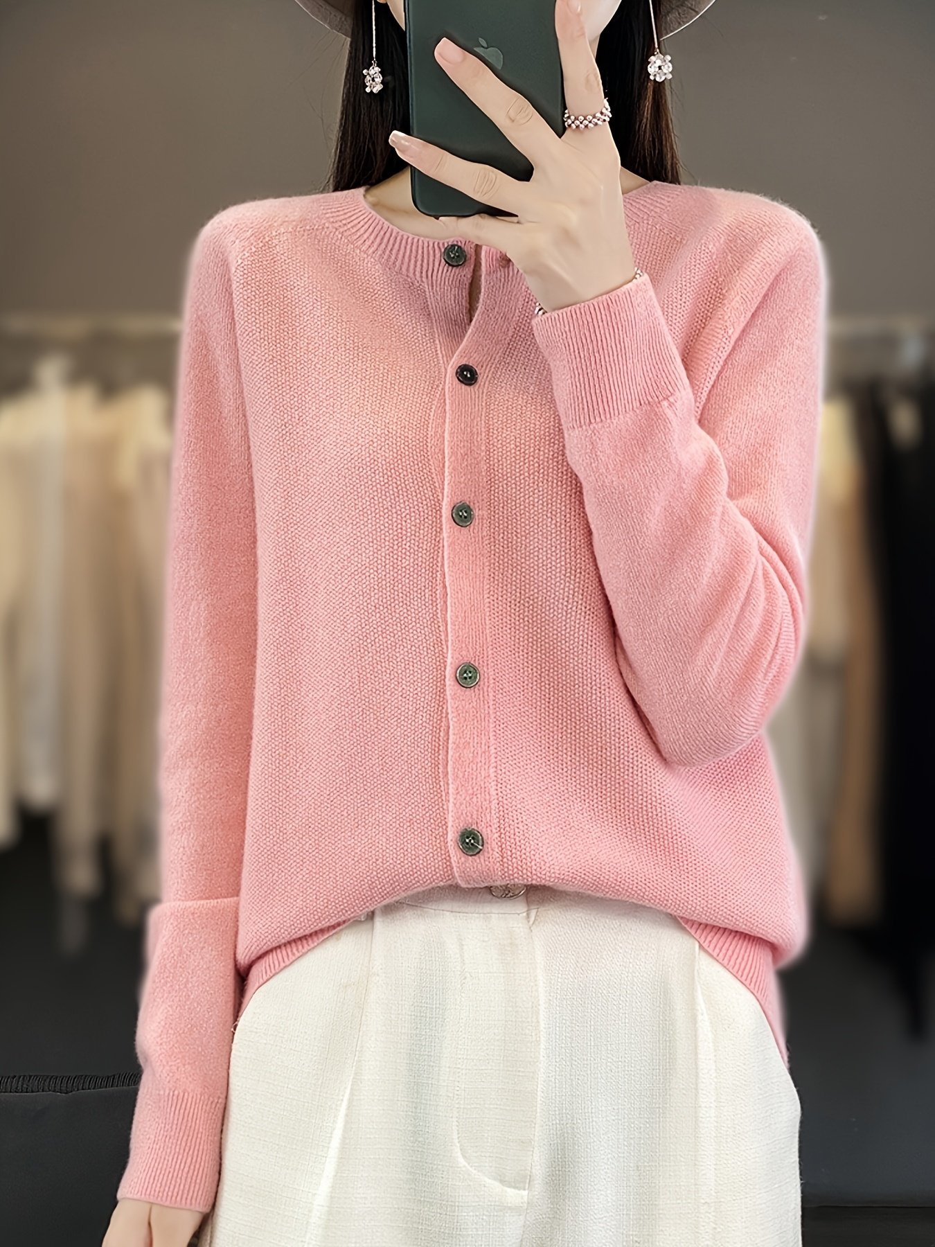 - أناقة كلاسيكية بلون موحد: بلون موحد جذاب وتفاصيل أزرار أمامية وياقة دائرية أنيقة، يسهل تنسيق هذا الكارديجان مع مختلف أزيائكِ، من الجينز الكاجوال إلى التنانير الأنيقة، لتبتكري إطلالات لا حصر لها تنبض بالرقي.
