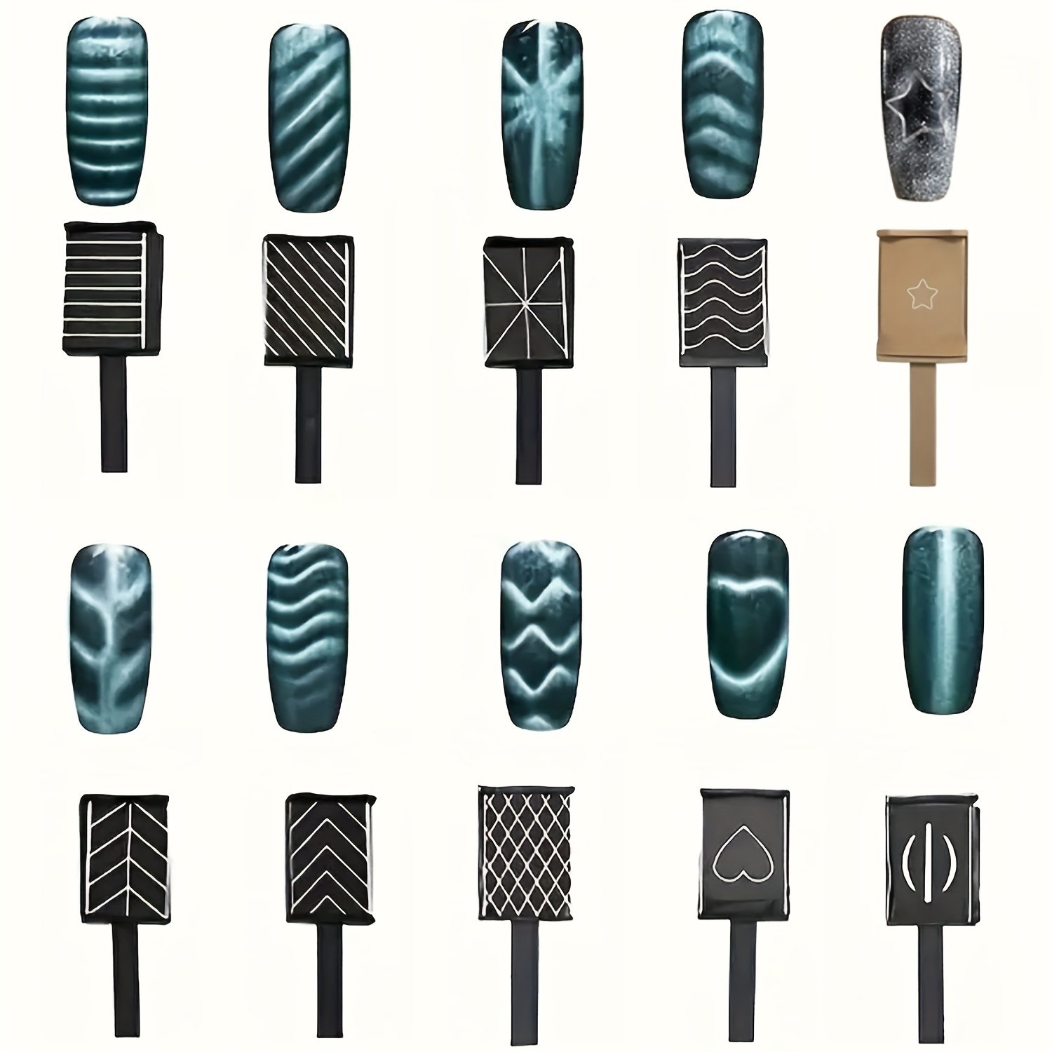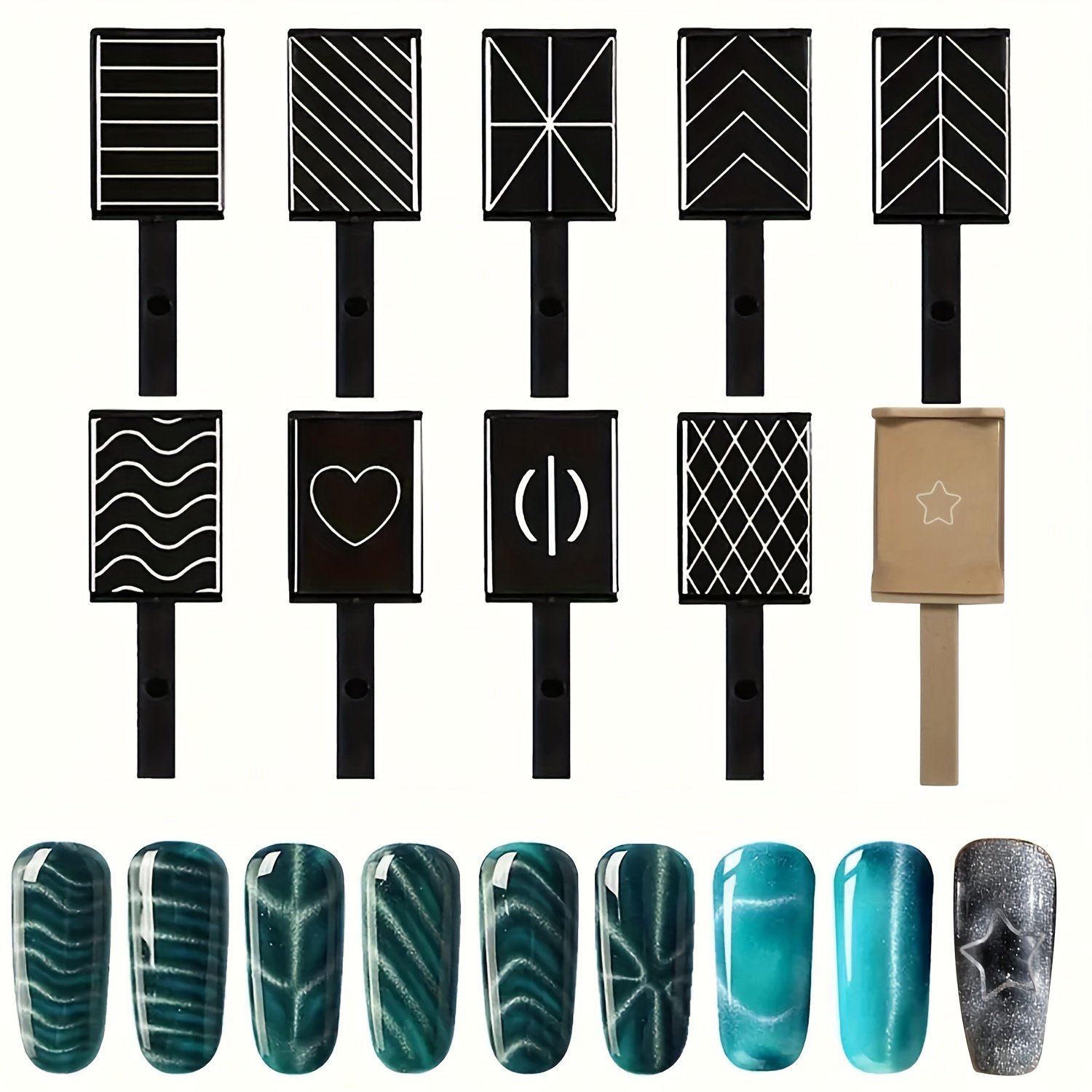 - أنماط متنوعة ومبتكرة: من تموجات الحب الأنيقة إلى الخطوط الفنية المعقدة والأشكال الهندسية، هذه العصا تمنحكِ القدرة على تشكيل أنماط لا حصر لها بلمسة مغناطيسية بسيطة.
