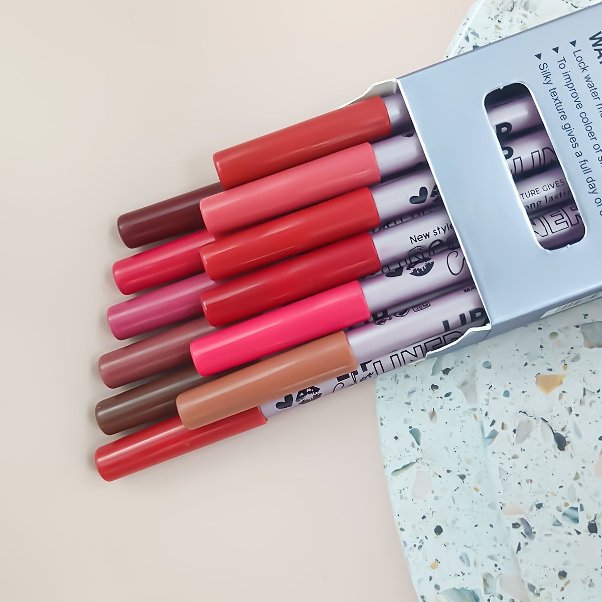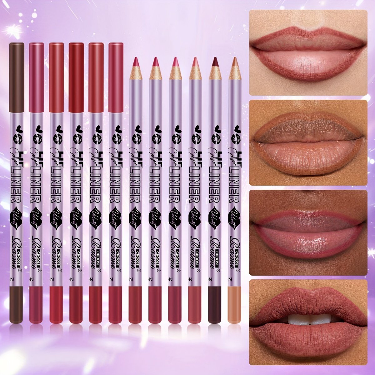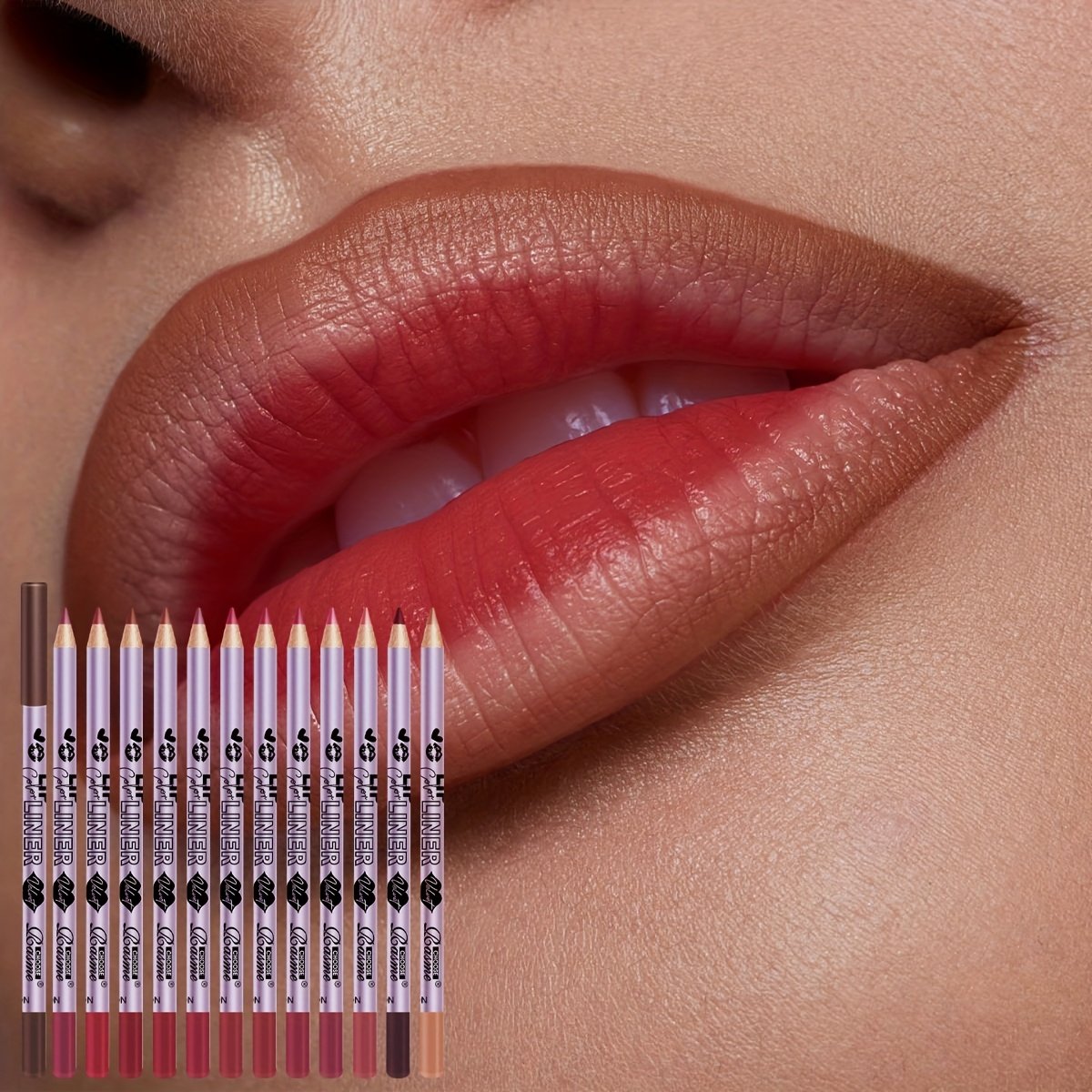 سر الشفاه الساحرة: مجموعة أقلام تحديد الشفاه المرطبة والمتكاملة (12 لونًا)