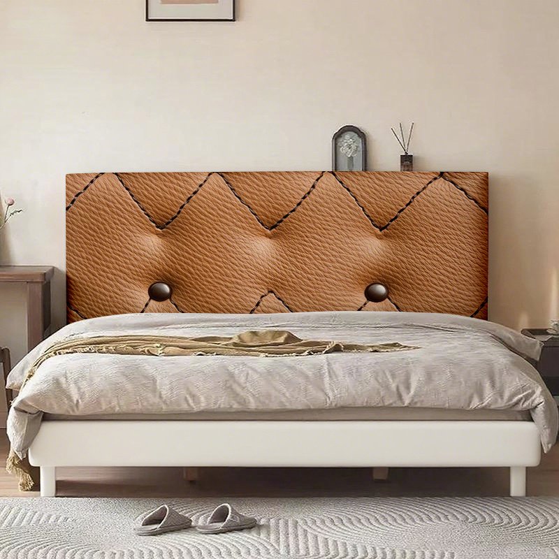 - تصميم فريد وجذاب: يتميز بنقشة تحاكي الجلد البني الفاخر مع تفاصيل المسامير المخيطة، مما يضفي طابعاً عصرياً وفخماً يعزز الدفء والجاذبية في أي غرفة نوم.