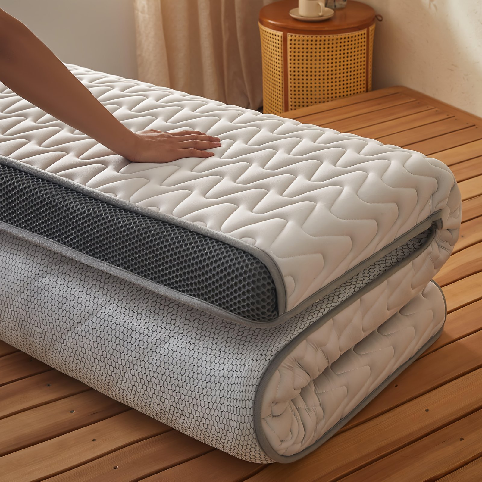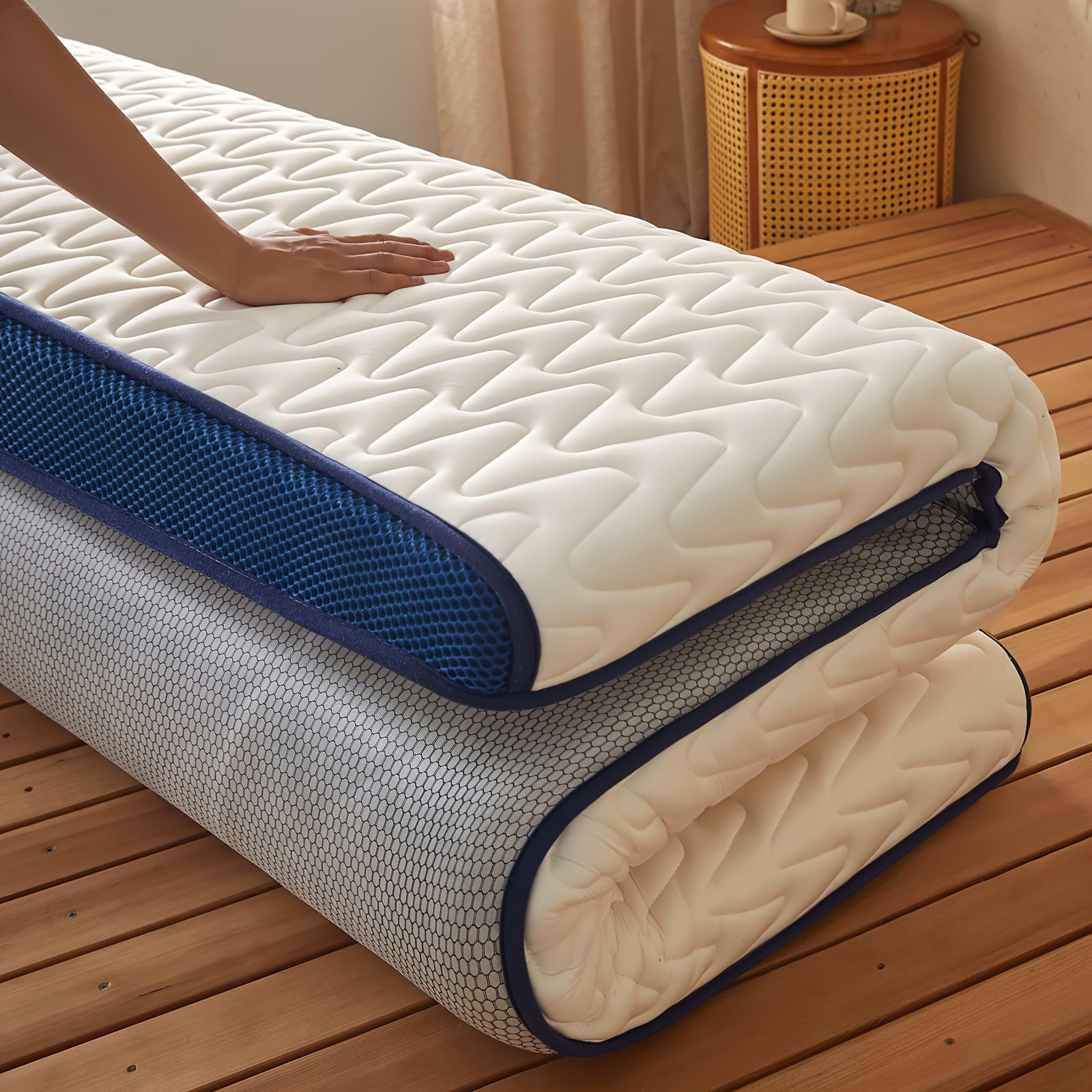 - قابلة للطي وسهلة التخزين: بفضل تصميمها العملي والمبتكر، يمكنك طيها وتخزينها بسهولة في أي مكان، أو نقلها بين الغرف، أو حتى اصطحابها معك لرحلات التخييم أو الإقامة في بيوت الضيافة.