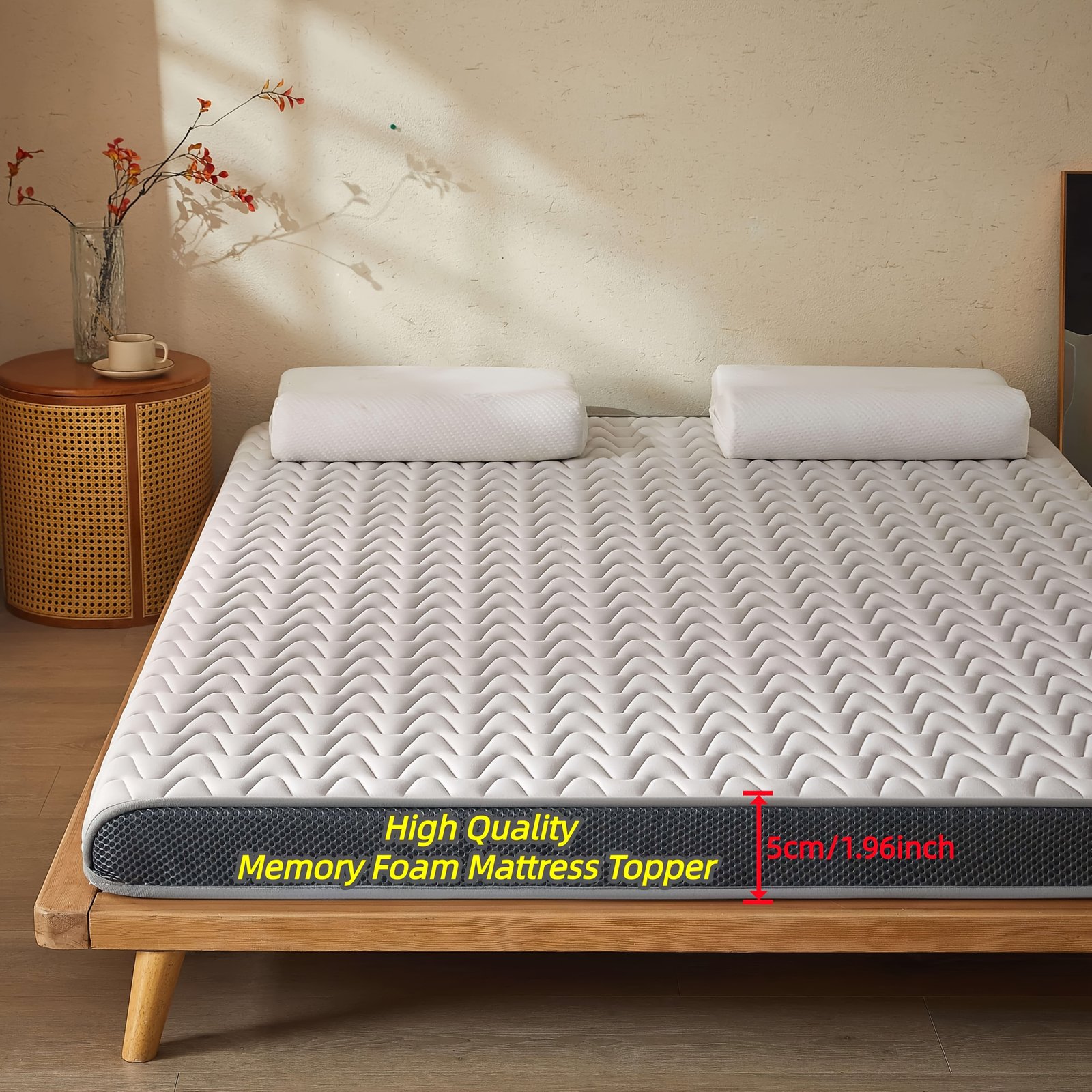 - سمك مثالي لراحة لا تُضاهى: بفضل سمكها البالغ 5 سم، توفر هذه الطبقة دعماً فائقاً وتبطينًا ناعمًا يحوّل سريرك العادي إلى واحة من الراحة الفائقة.