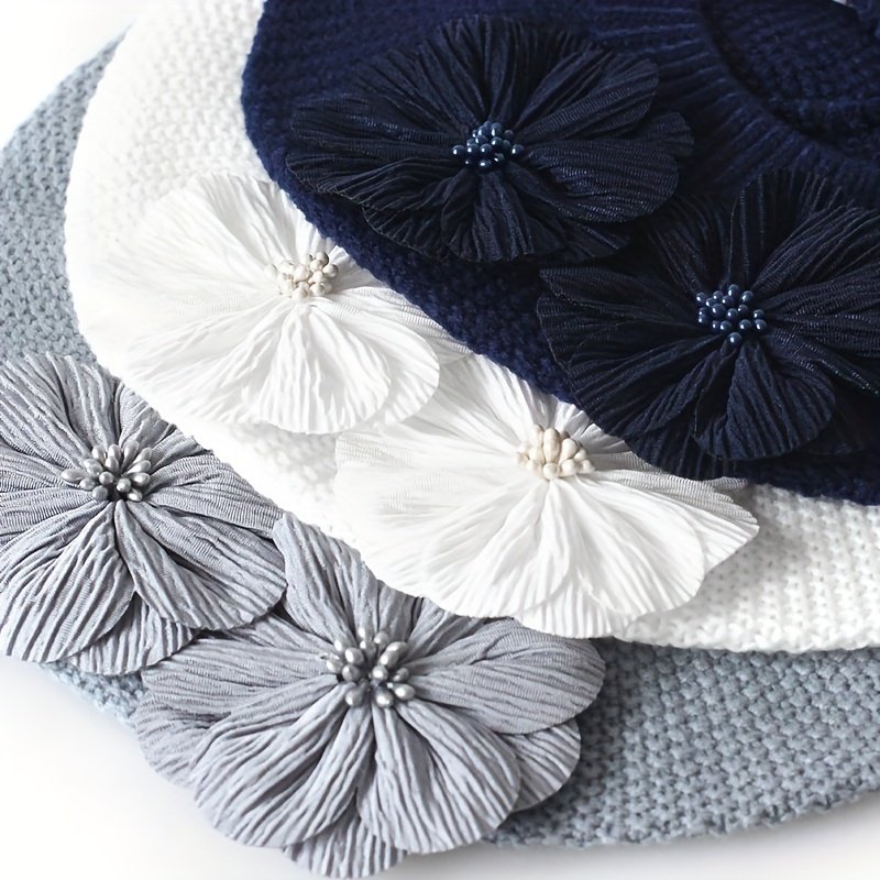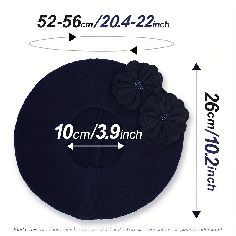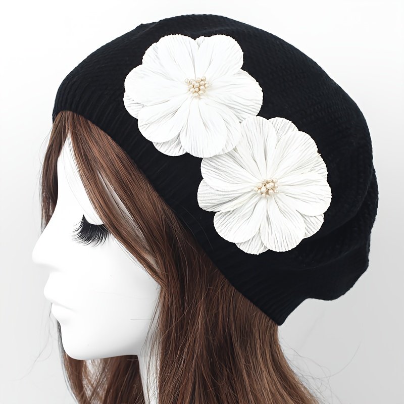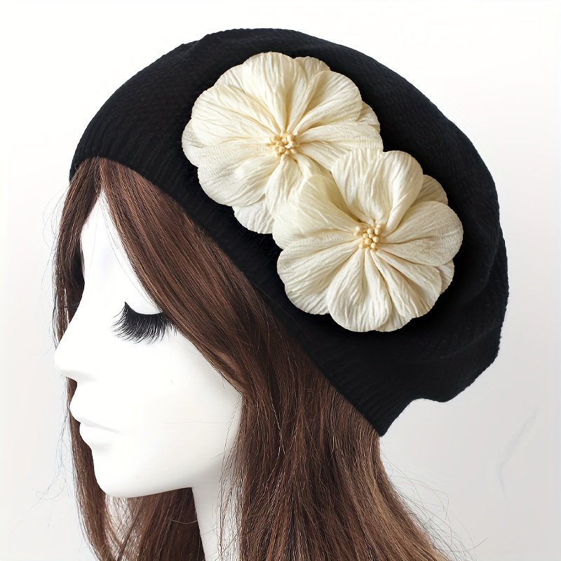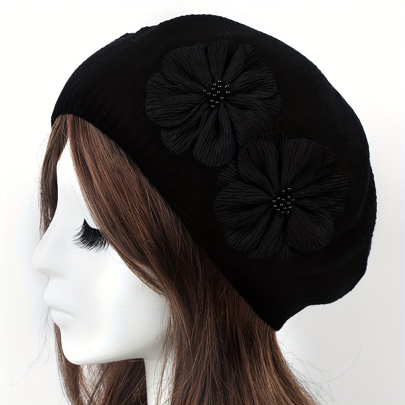 - تصميم أنيق وعصري: شكل البيريه الكلاسيكي مع لمسة زهرية رقيقة تضيف جاذبية وأنوثة فريدة لإطلالتك.