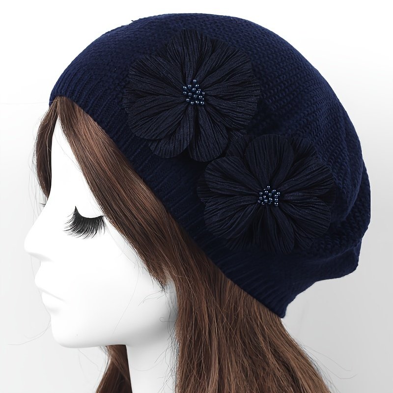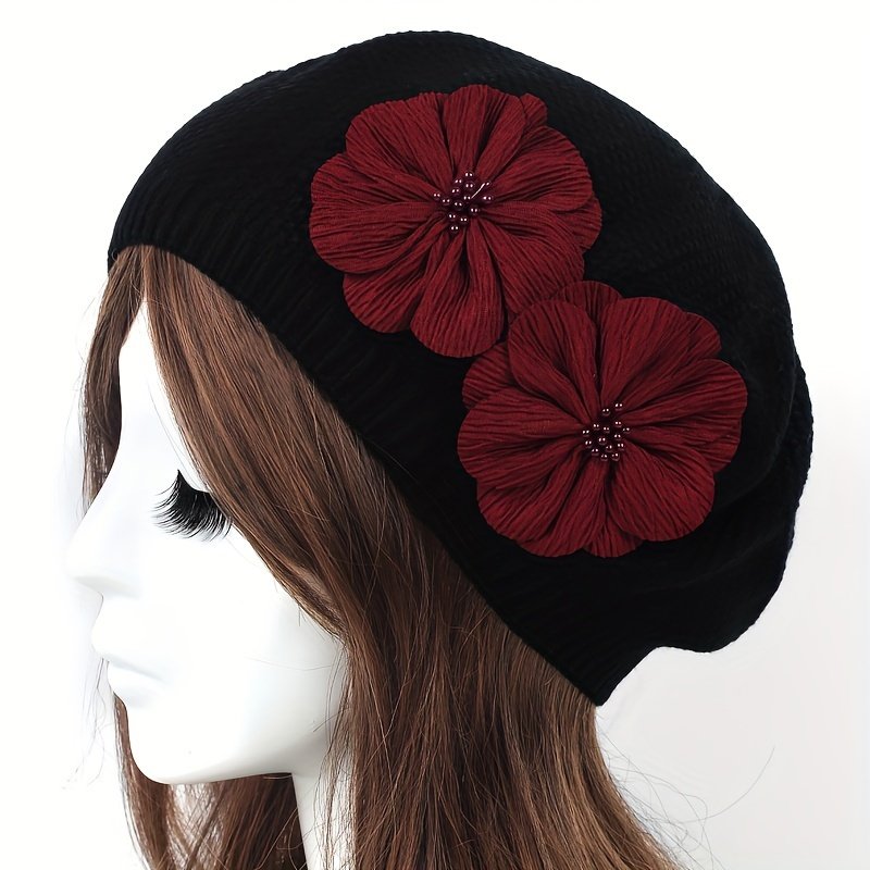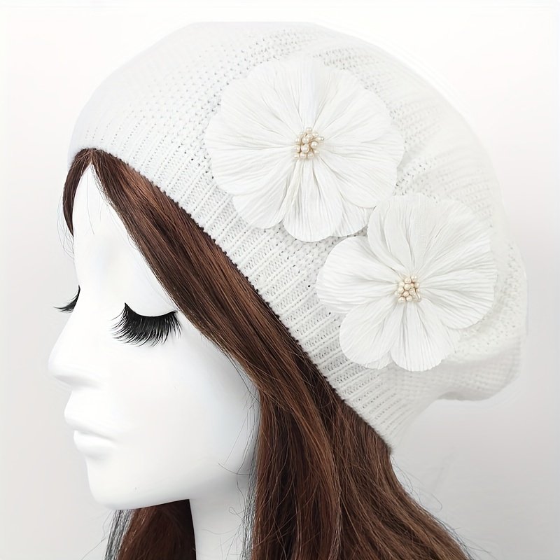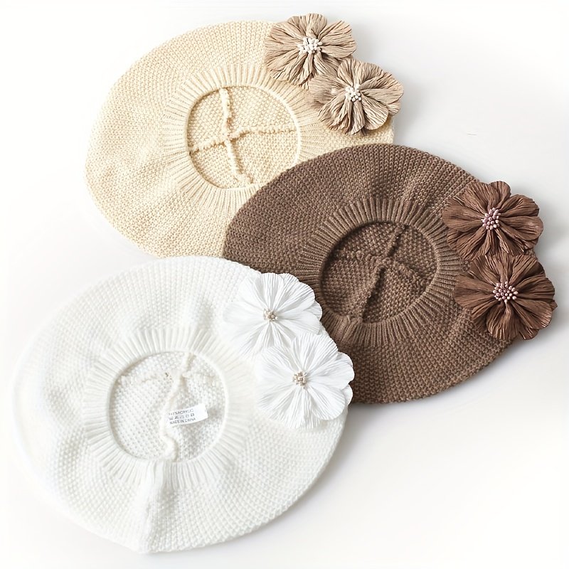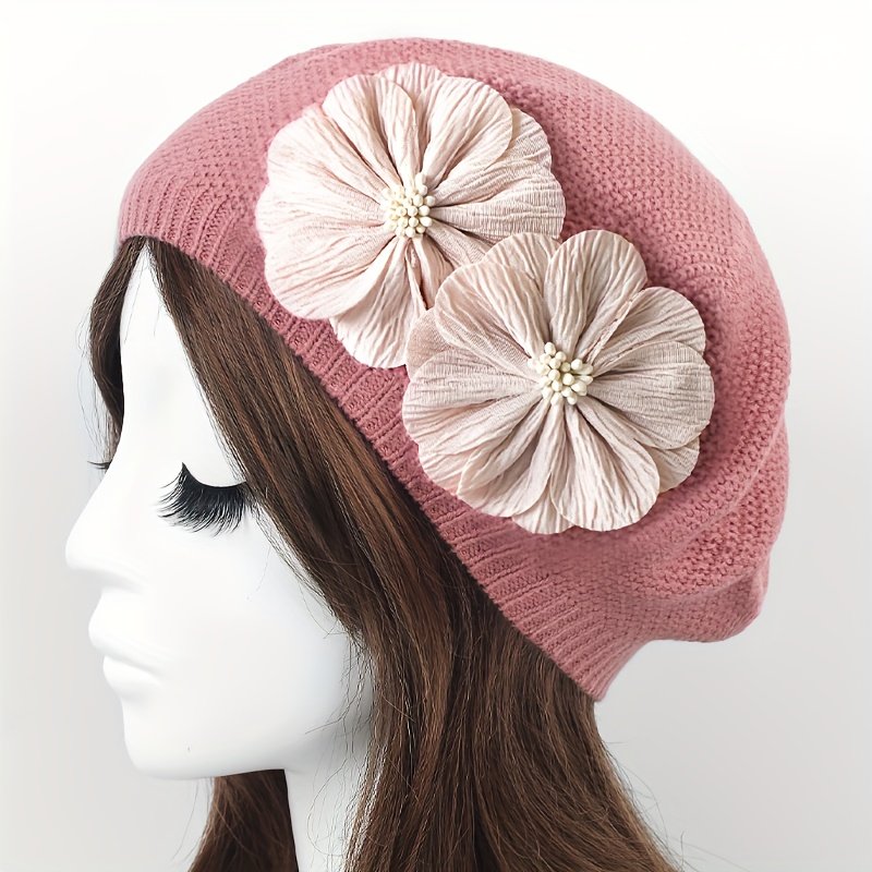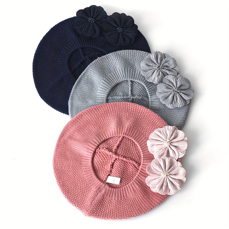 - تصميم أنيق وعصري: شكل البيريه الكلاسيكي مع لمسة زهرية رقيقة تضيف جاذبية وأنوثة فريدة لإطلالتك.