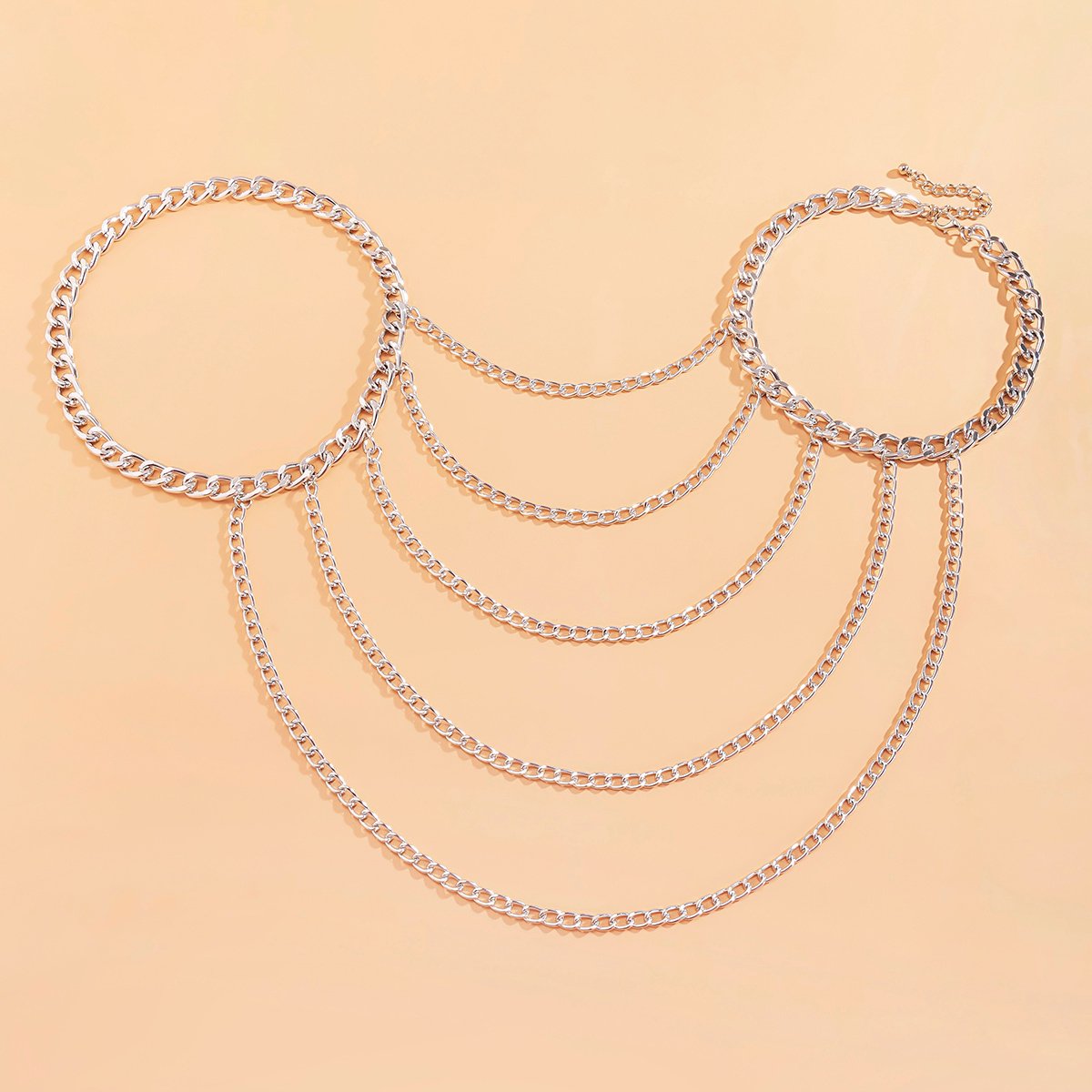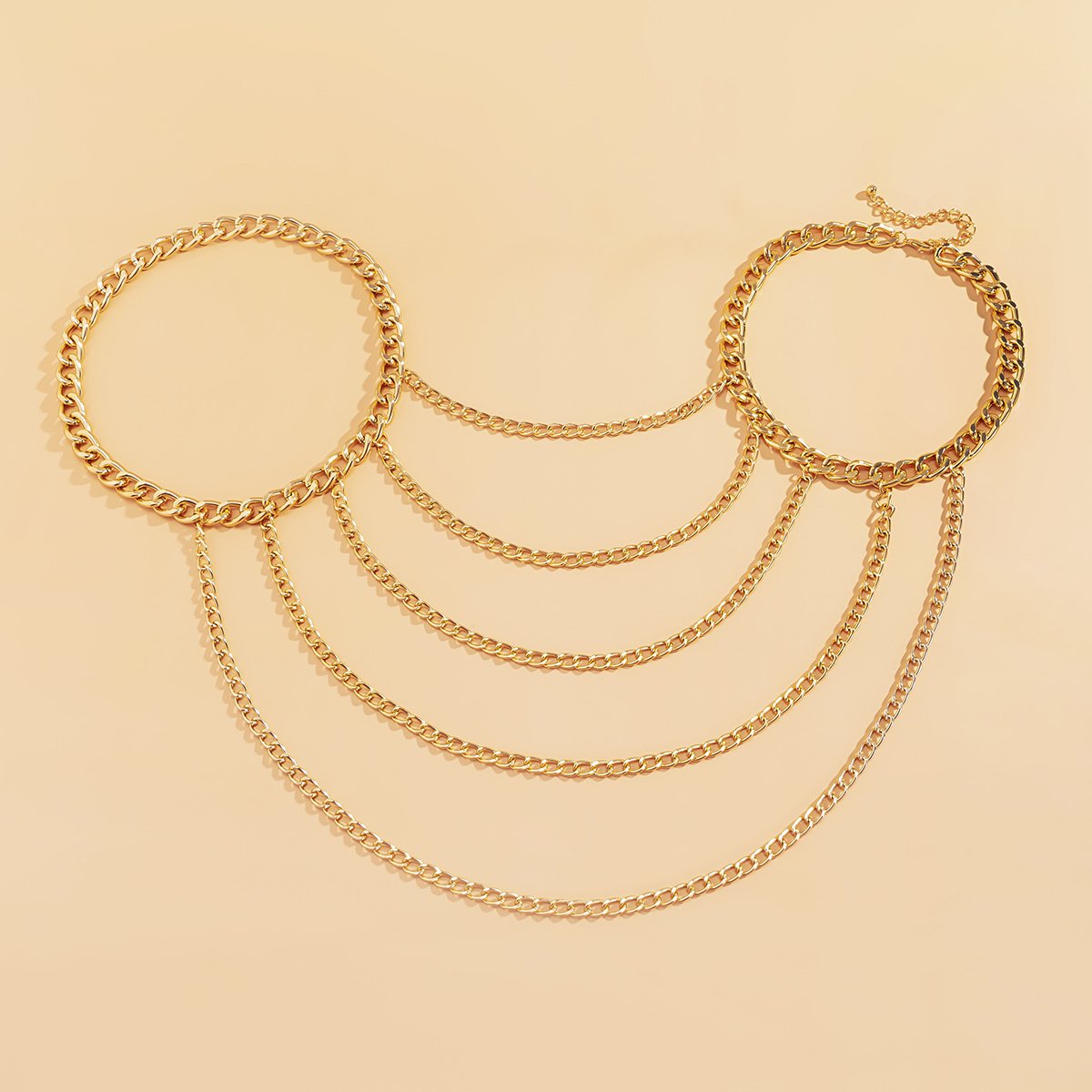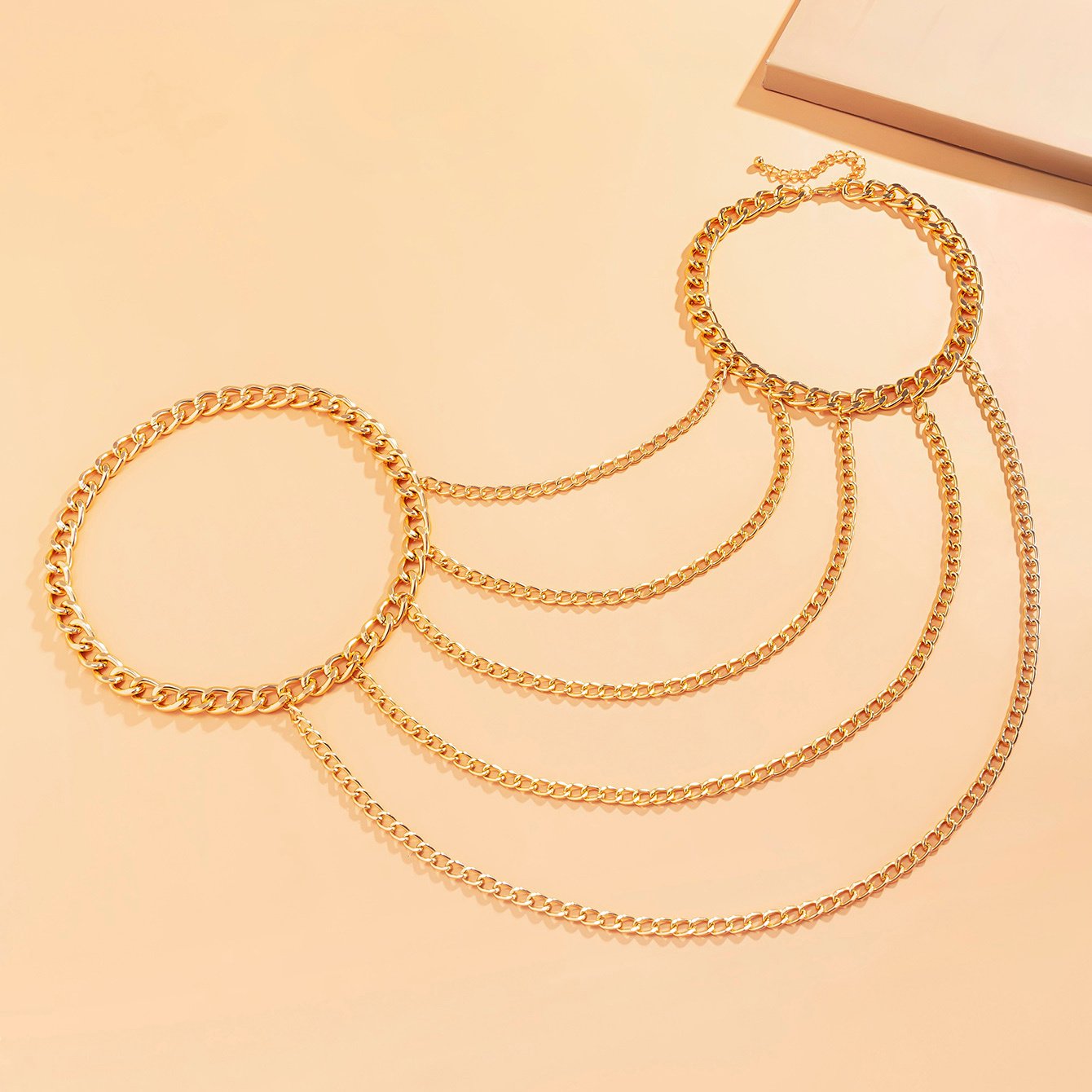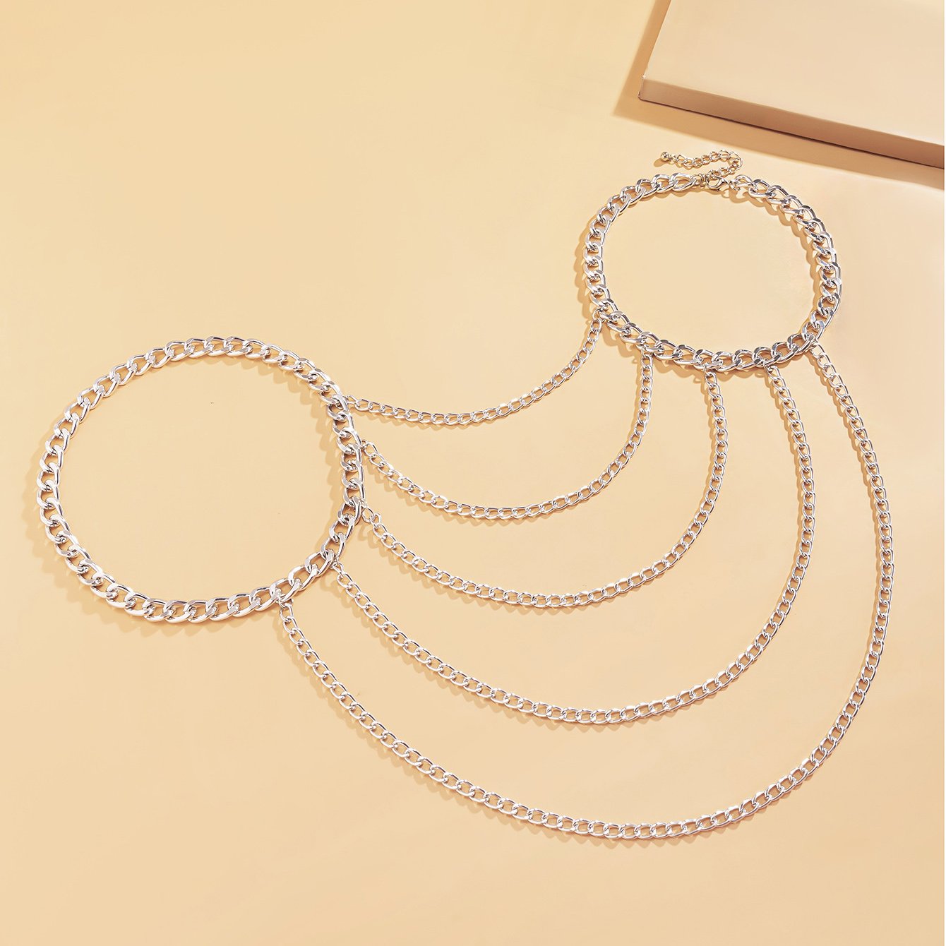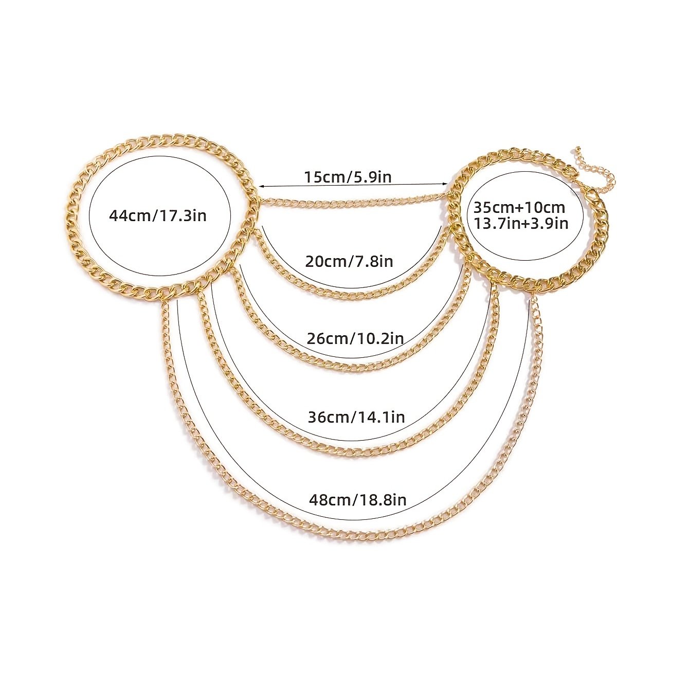 - تصميم متعدد الطبقات: يمنحك إطلالة عصرية ومبتكرة، حيث تتدلى السلاسل بجمال لتبرز أناقتك وتضيف عمقاً وجاذبية لزيّك.