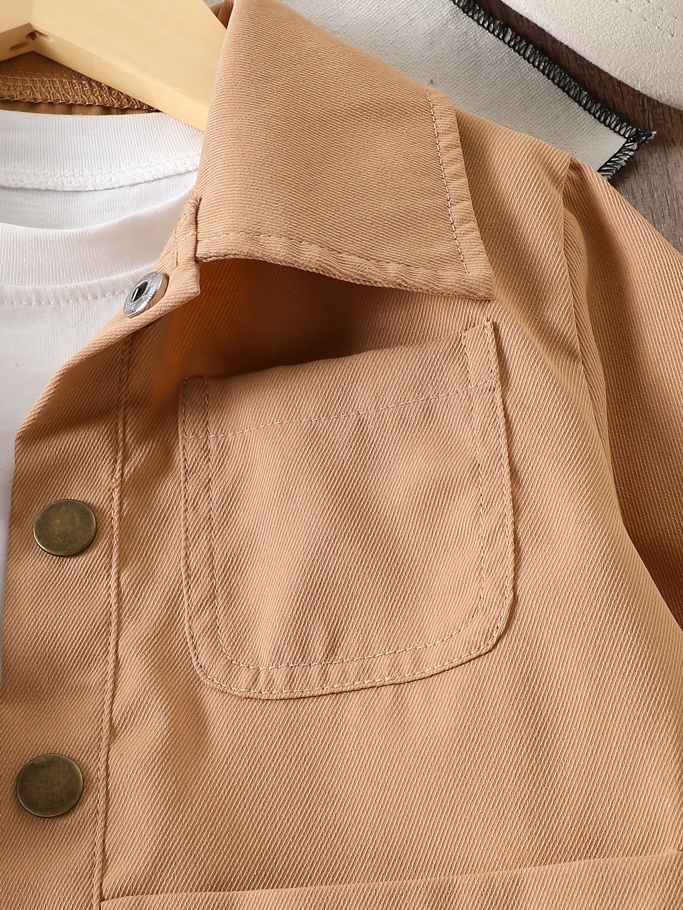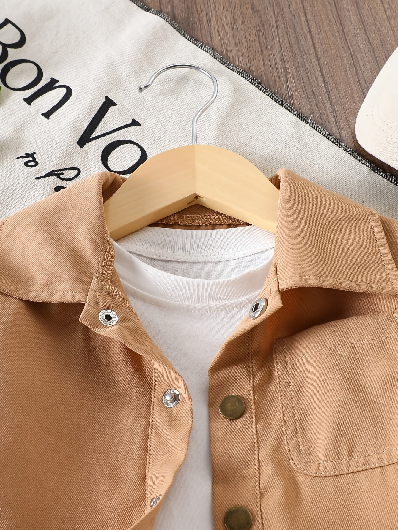 • تصميم عصري وجذاب: بلون سادة أنيق وياقة قائمة مميزة، يضفي لمسة عصرية وراقية على إطلالة ابنك، مما يجعله محط الأنظار.