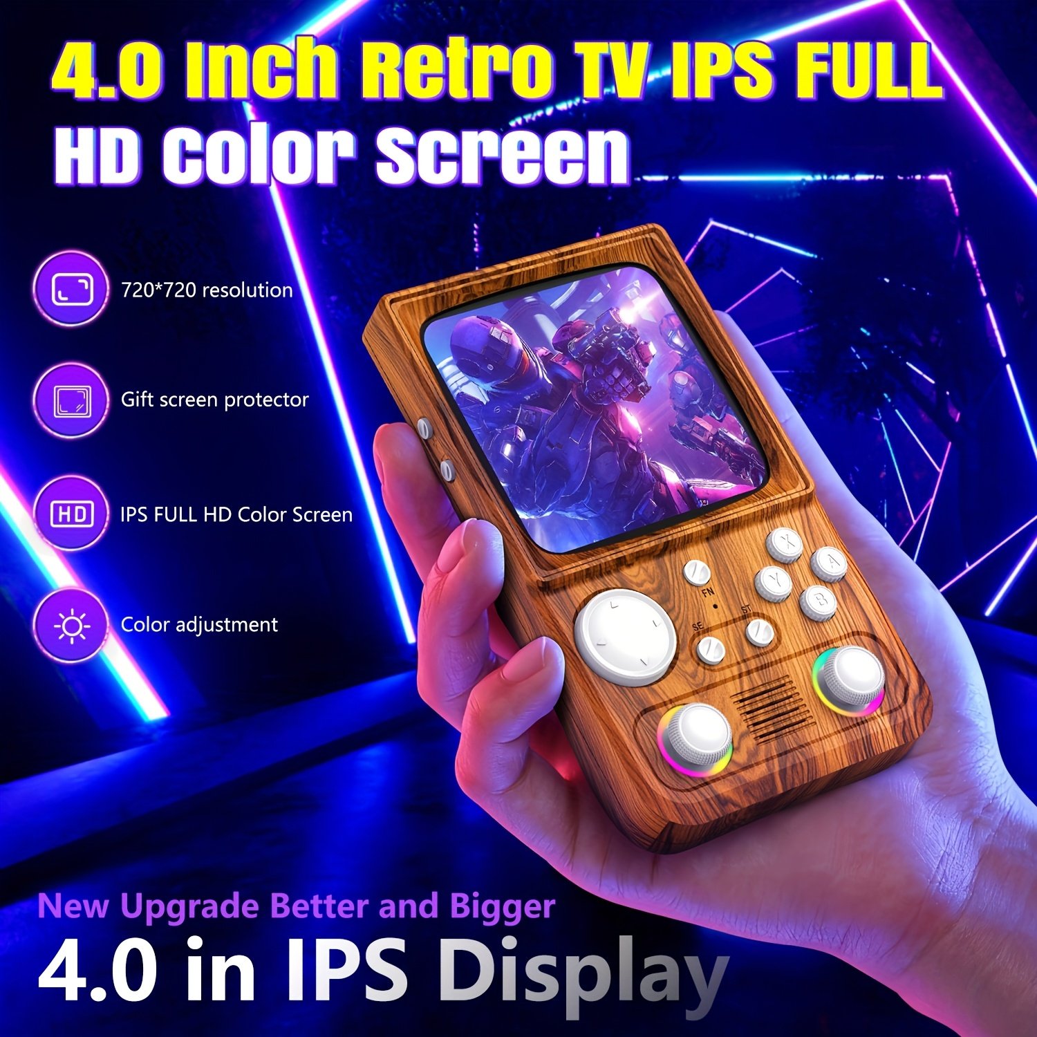 - شاشة IPS غامرة بحجم 4.0 بوصة: شاهد ألعابك المفضلة بتفاصيل مذهلة وألوان حيوية وزوايا مشاهدة واسعة، لتجربة بصرية لا تُنسى.