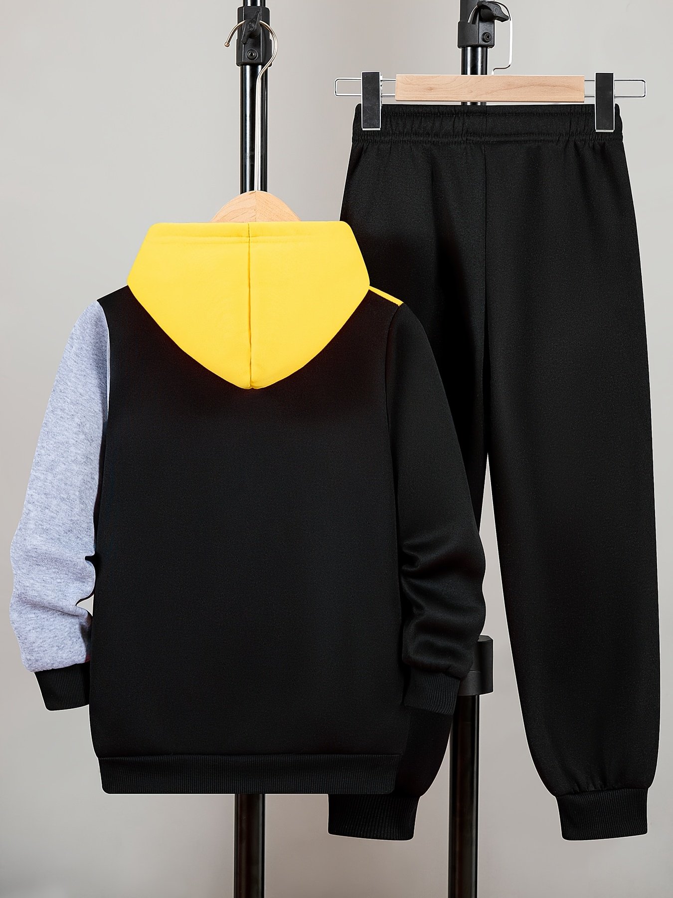 - طقم متكامل قطعتين: يأتي الطقم بقلنسوة أنيقة بسحاب أمامي وبنطال متناسق، مما يوفر إطلالة متكاملة ويسهل عملية الارتداء والخلع.