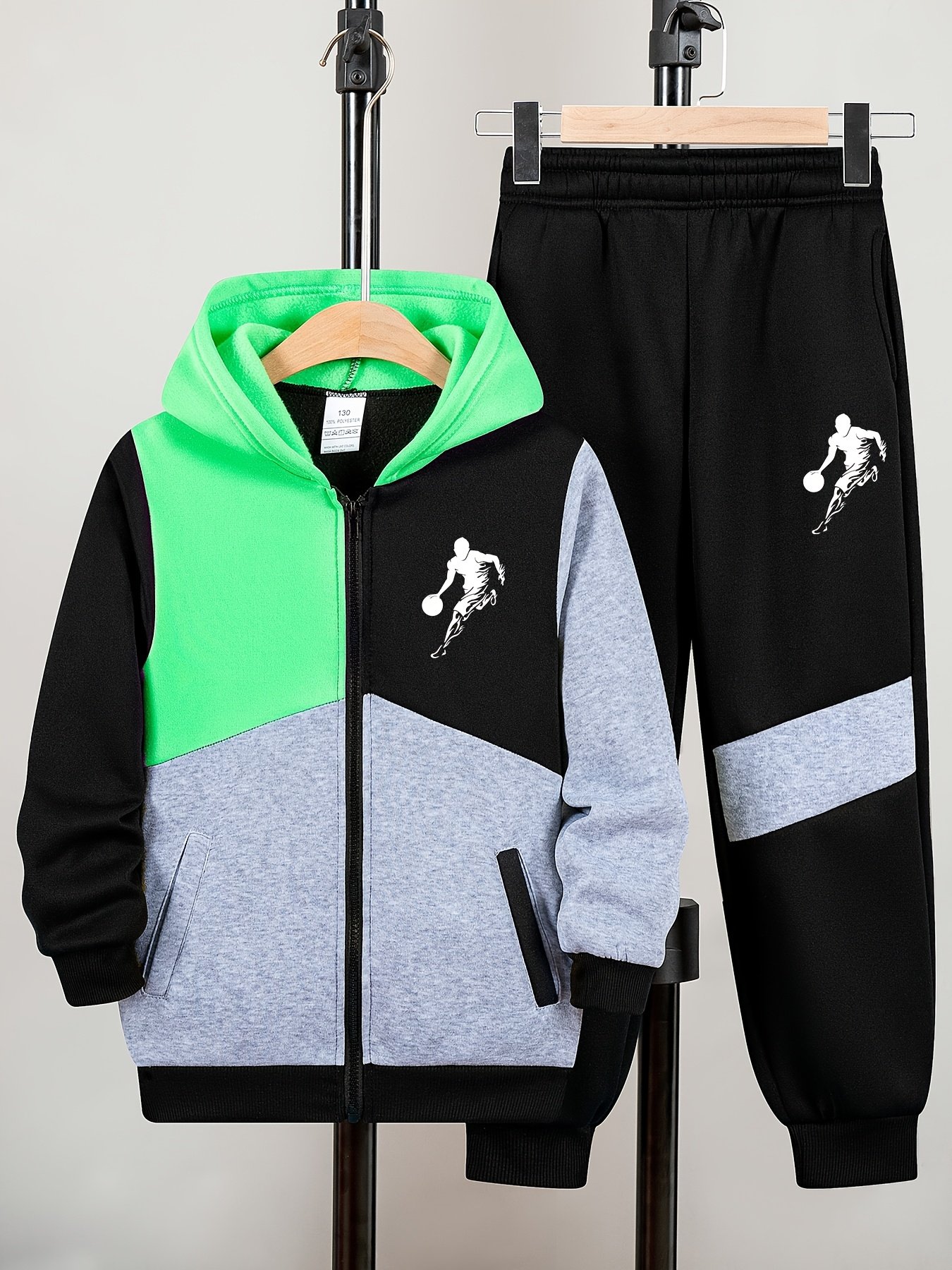 - تصميم رياضي جذاب: يزدان الطقم بطبعة لاعب كرة سلة نابضة بالحياة وتصميم “كولور بلوك” عصري، مما يمنح ابنك إطلالة فريدة ومميزة تليق بالأبطال الصغار.