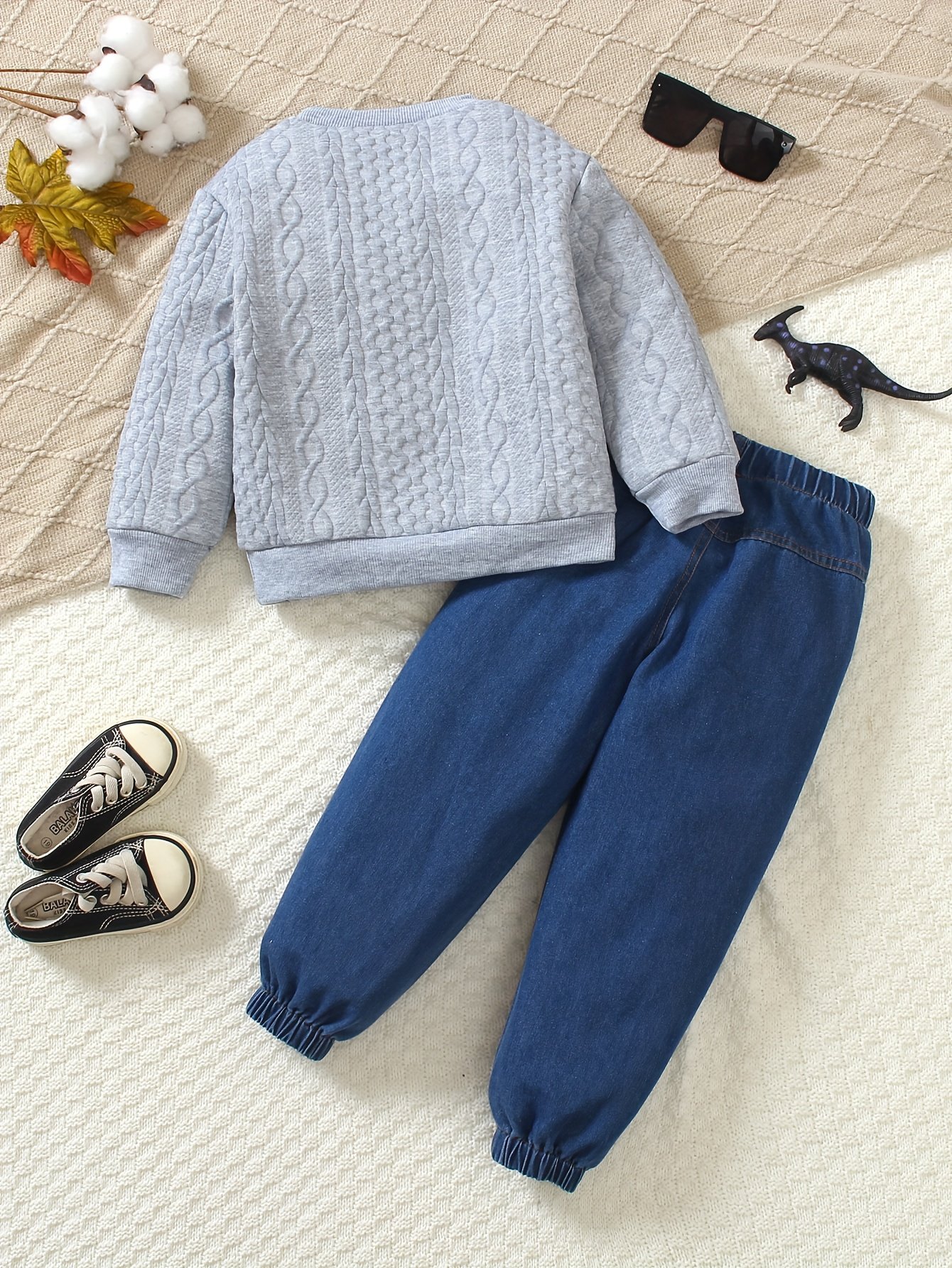- متانة وجودة عالية: بلوزة ذات نسيج مميز وبنطال جينز مغسول خصيصًا يضمنان جودة استثنائية ومظهرًا أنيقًا يدوم طويلاً، ويصمد بثبات أمام اللعب اليومي والمغامرات الخارجية المتكررة.