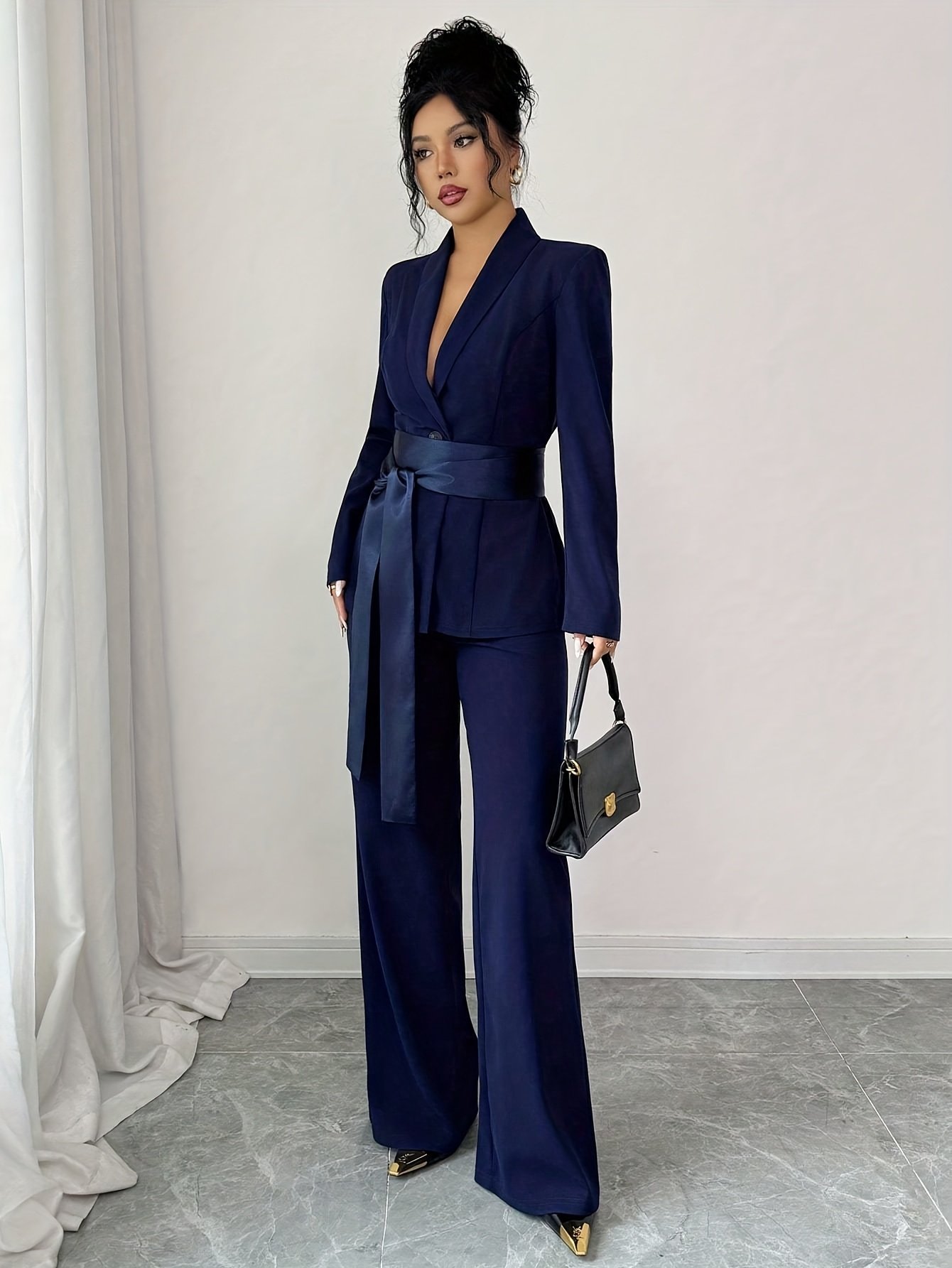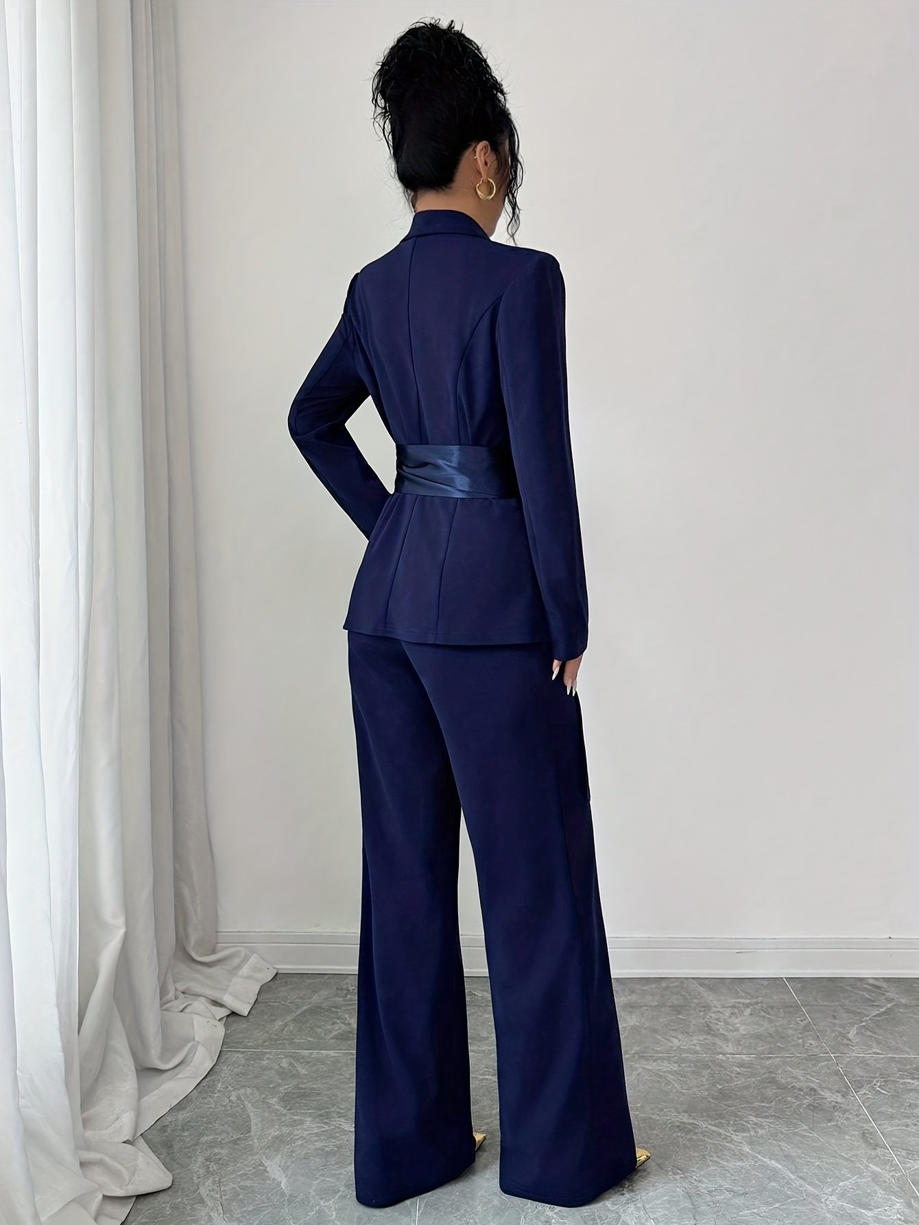 - تصميم يحافظ على شكله: قماش منسوج بدون مرونة يضمن أن يحافظ الطقم على شكله المحدد والأنيق، ليمنحكِ مظهراً متناسقاً ومصقولاً.