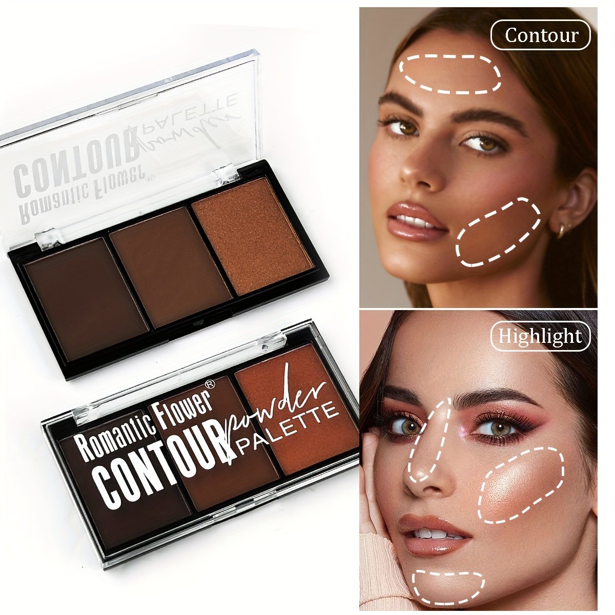 • تحديد وإضاءة ثلاثية الأبعاد: تحتوي اللوحة على ثلاث درجات متناسقة تماماً للنحت (الكونتور) لتحديد الملامح، الإشراق (الهايلايت) لإبراز الجوانب الجمالية، ودرجة تثبيت ناعمة، مما يمنحك مكياجاً احترافياً ومتكاملاً.