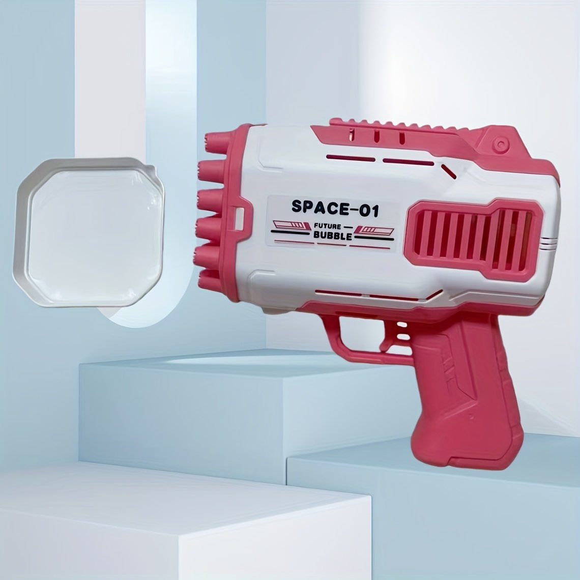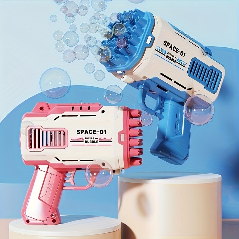 - فقاعات بلا توقف: تصميم فريد بـ 32 ثقبًا يطلق سيلاً لا يتوقف من الفقاعات الملونة المتلألئة، ليملأ الأجواء بالبهجة والسحر في كل لحظة، ويضمن تجربة لعب مذهلة وممتعة.