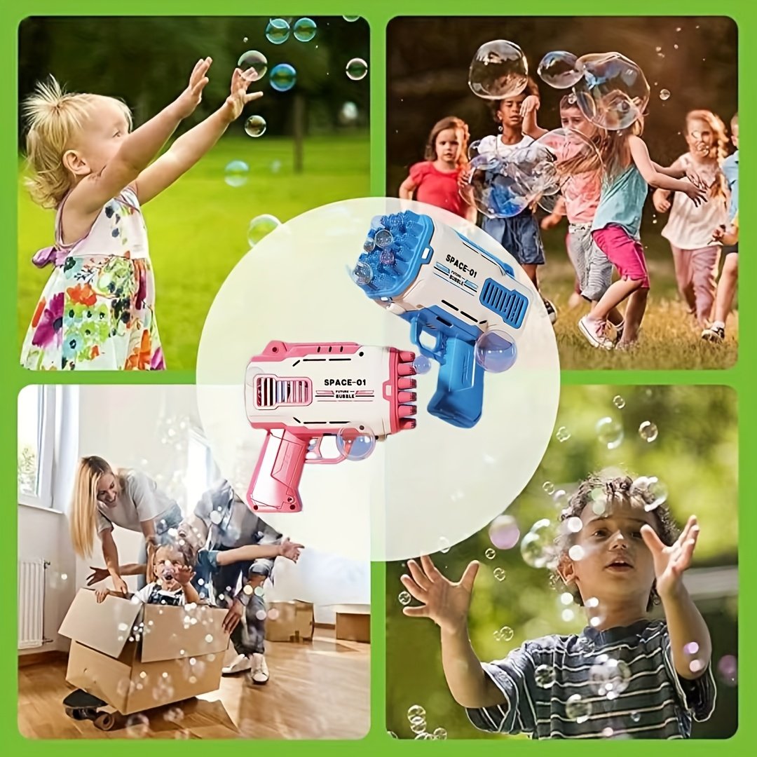 استعدوا لمشاهدة عيون أطفالكم وهي تتلألأ فرحاً وبهجة! نقدم لكم الجهاز المثالي لتحويل أي مناسبة إلى مهرجان من الفقاعات الملونة المتلألئة. مع آلة الفقاعات المبتكرة هذه ذات الـ 32 ثقبًا، سيغرق أطفالكم في عالم من السحر والضحكات التي لا تنتهي، لخلق ذكريات لا تُنسى في كل حفلة أو نزهة.