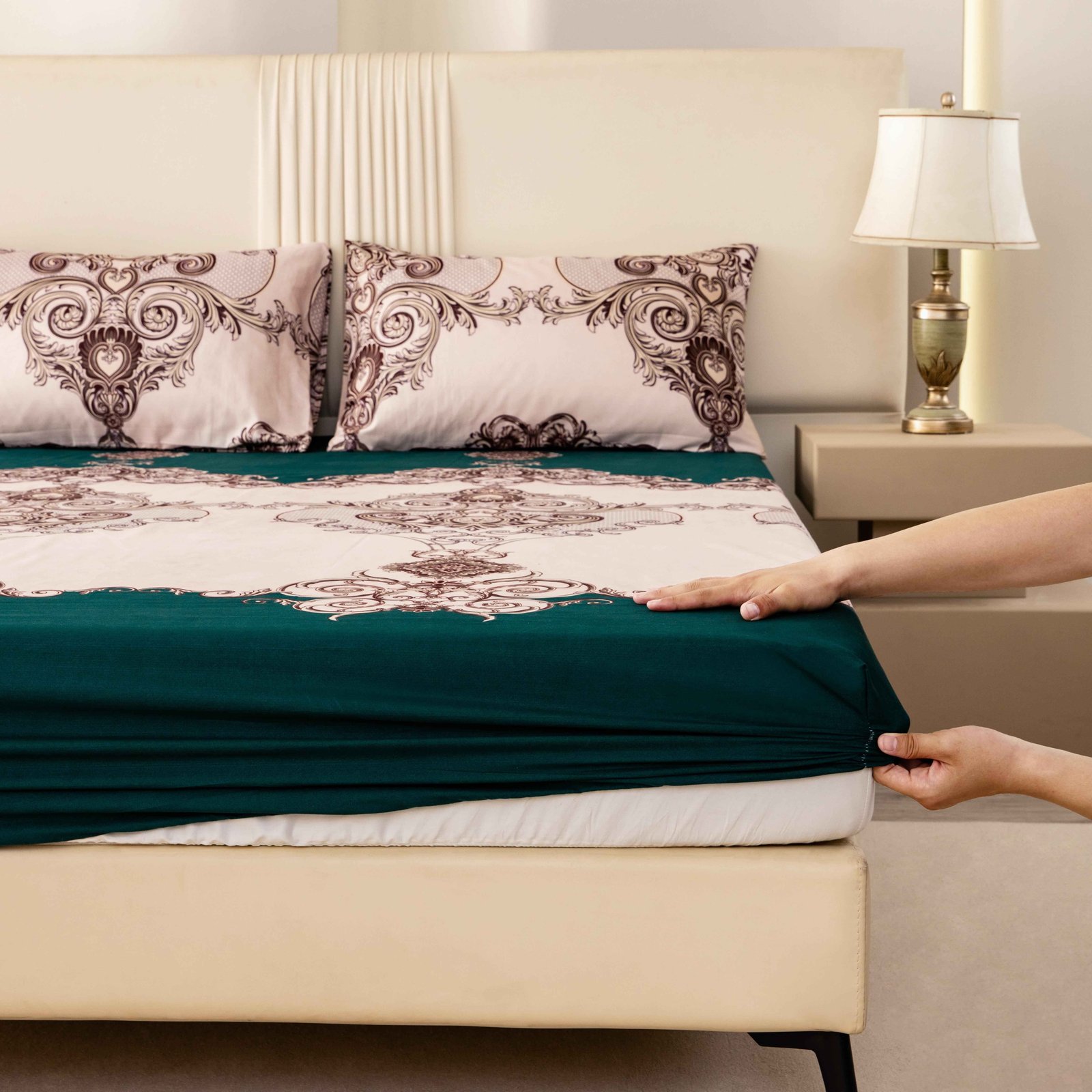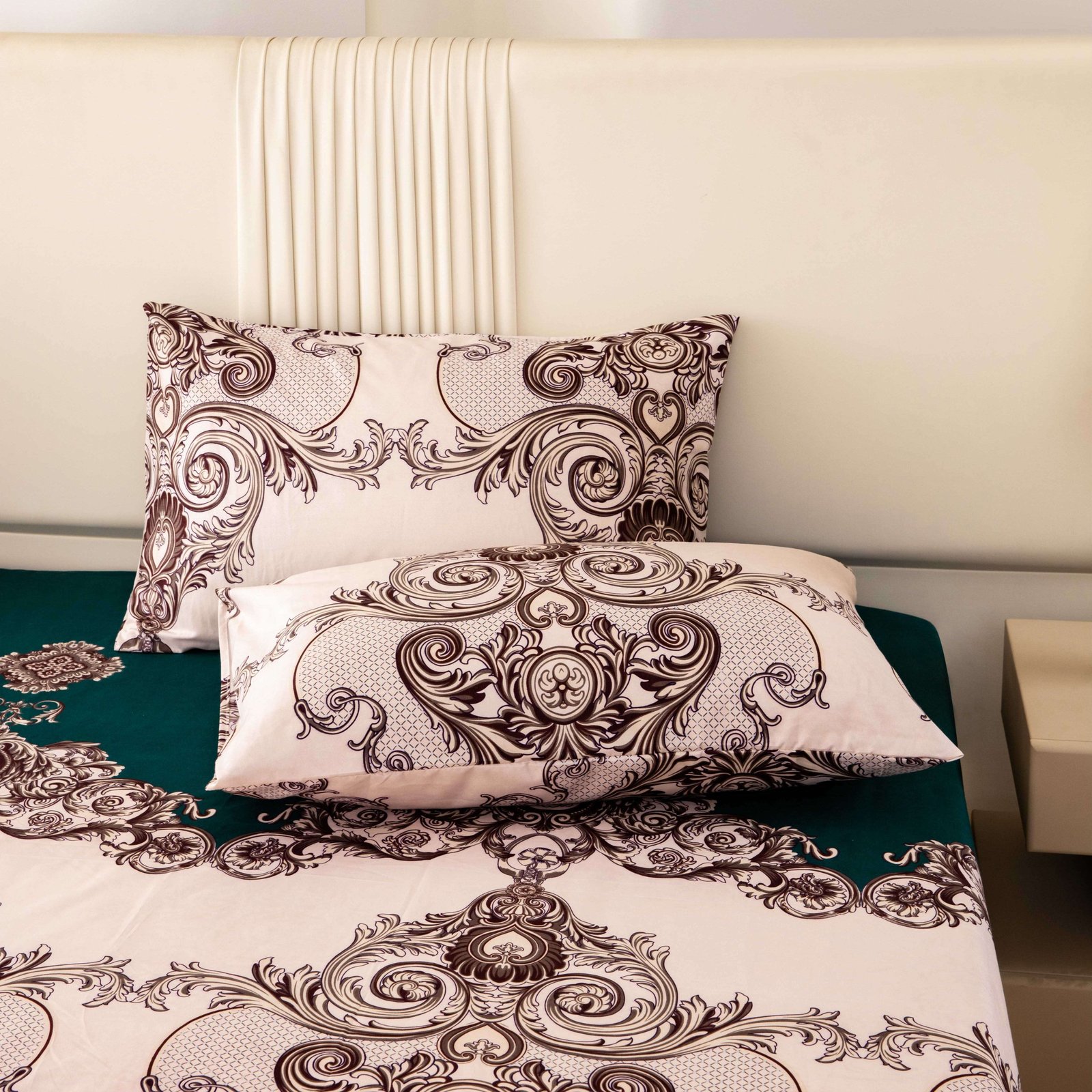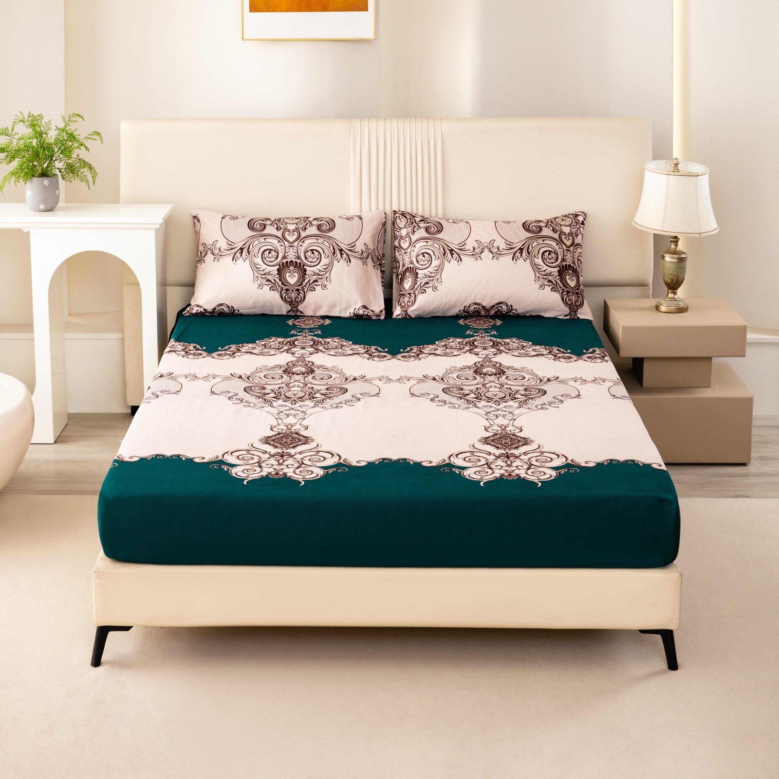 هل تبحث عن تجديد لغرفة نومك يجمع بين الأناقة المطلقة والراحة الفائقة؟ نقدم لك طقم الشرشف المدبب المطبوع المكون من 3 قطع، المصمم خصيصًا ليمنحك تجربة نوم لا مثيل لها. دع سريرك يتألق بلمسة عصرية ومريحة تدوم طويلاً.
