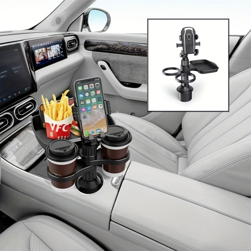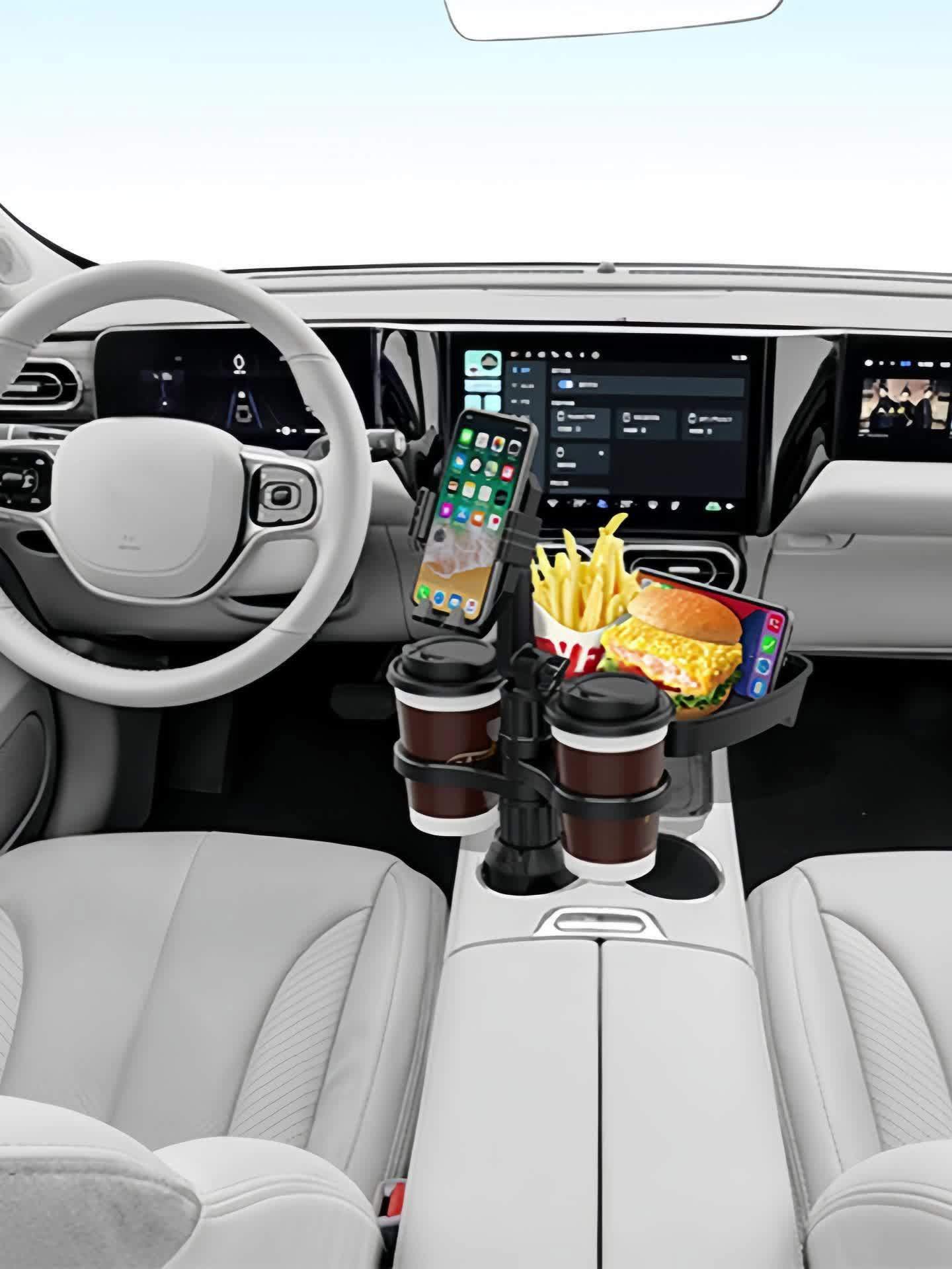• وحدة متكاملة 4 في 1: يجمع هذا الحل المبتكر بين حامل هاتف آمن ومستقر، وحامل أكواب عملي للمشروبات، وصينية واسعة للطعام والوجبات الخفيفة، بالإضافة إلى مساحة تخزين إضافية لضرورياتك الصغيرة، كل ذلك في جهاز واحد يبسّط رحلاتك بشكل مدهش.