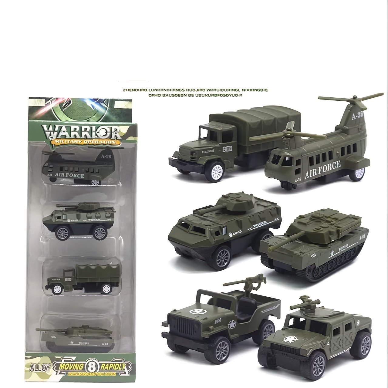 • تصميم عسكري أصيل وتفاصيل دقيقة: تأتي السيارات بلونها الأخضر الجيشي الكلاسيكي مع تفاصيل واقعية متقنة، مما يمنحها مظهرًا جذابًا ومحاكيًا للواقع. مثالية لتحفيز اللعب التخيلي الذي يحاكي المعارك البطولية أو لتكون قطعة عرض فاخرة في مجموعتك.