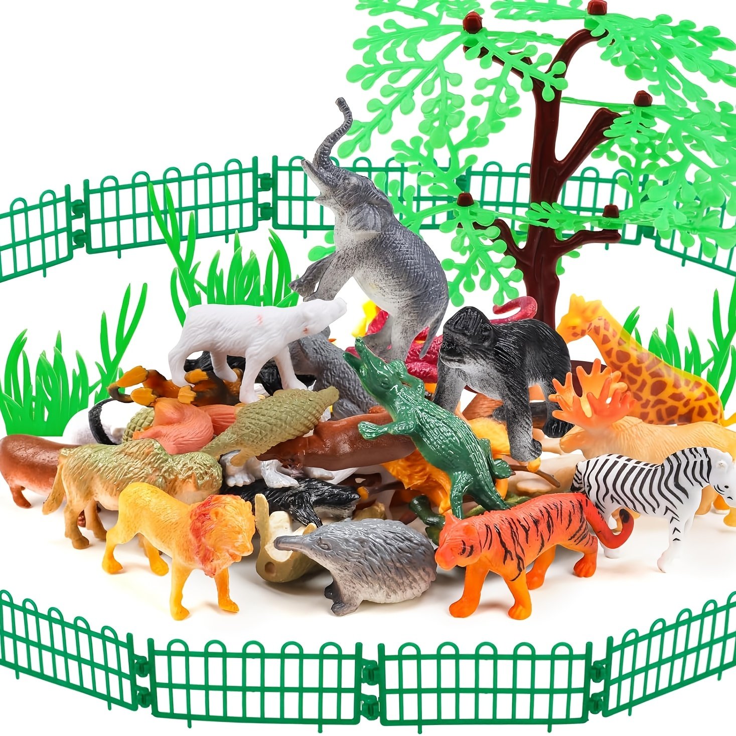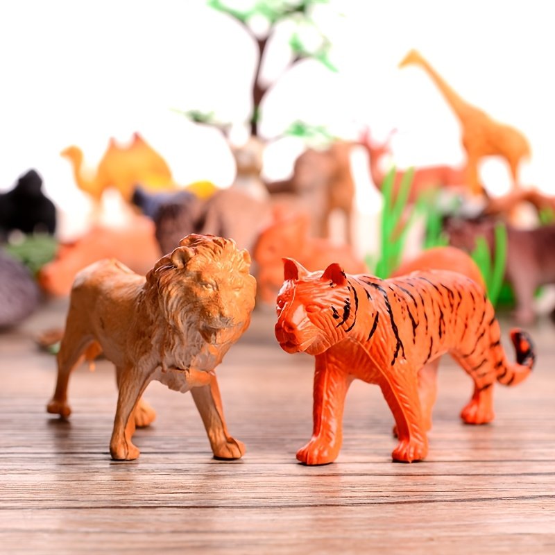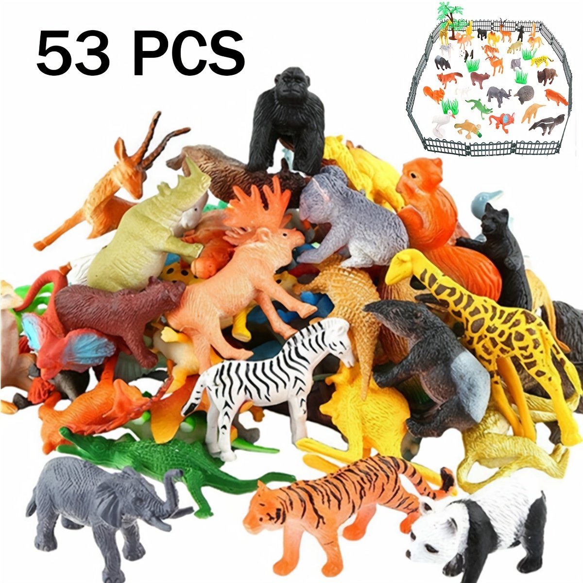 - مجموعة شاملة ومتنوعة: استمتع بـ 53 دمية حيوان بري مصغرة وواقعية، تشمل الأسد، فرس النهر، النمر، الدب، الفيل، الزرافة، وغيرها الكثير، لتكوين حديقة حيوان أو نظام بيئي متكامل يحاكي الطبيعة.