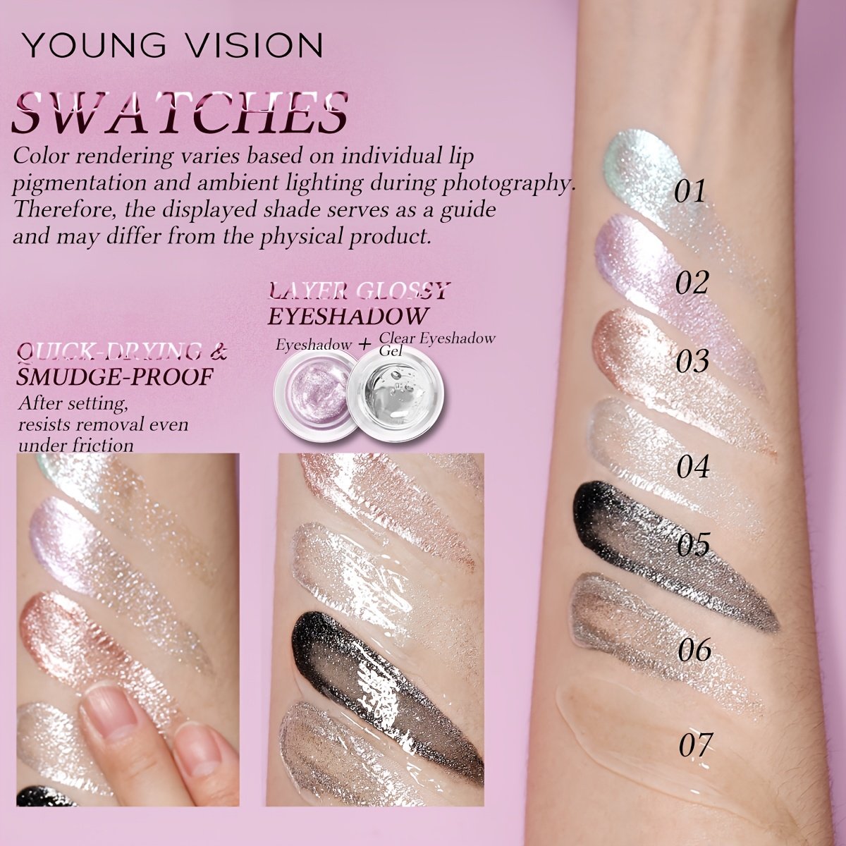 - تنوع مذهل للألوان: استمتعي بباليتة غنية تتراوح من 5 إلى 8 ألوان متلألئة، تشمل الأسود الجريء، الذهبي الفاخر، الوردي الناعم، الفضي المتألق، ومجموعة ألوان مختلطة فريدة، لتناسب كل مزاج ومناسبة، وتمنحكِ حرية الإبداع في مكياجكِ.