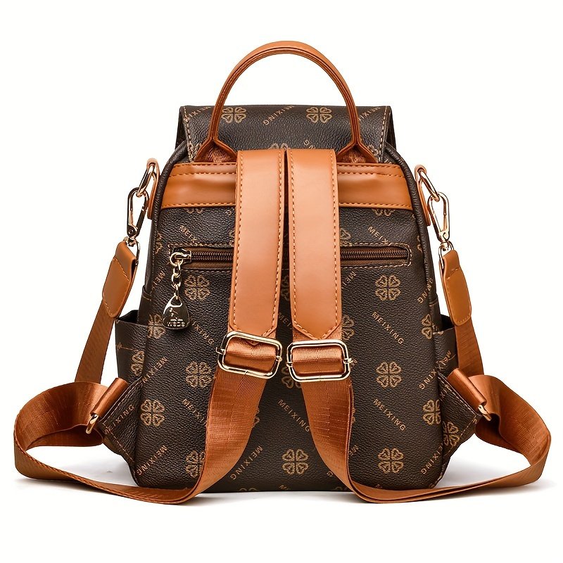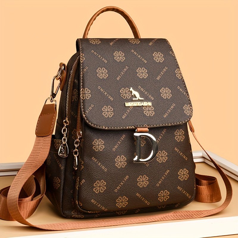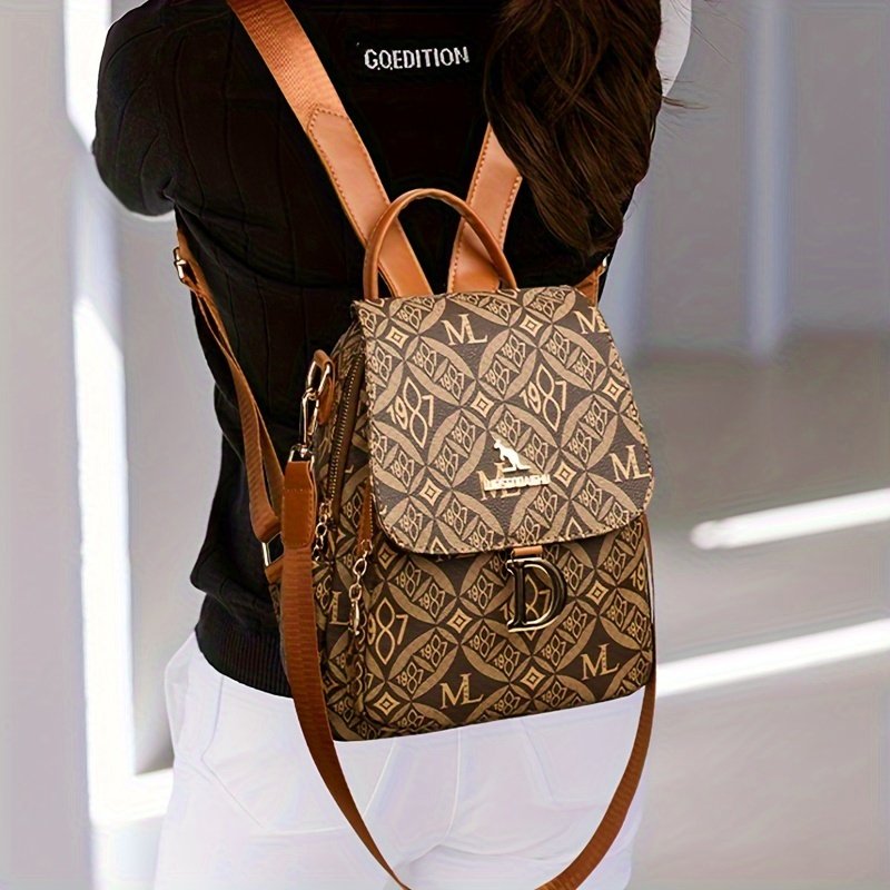 - تفاصيل تصميم أنيقة ومميزة: تضفي عليها لمسة عصرية بفضل الطبعات العشوائية الصغيرة الفريدة، خيوط الخياطة الدقيقة، وتناغم الألوان الجذاب مع اللون البني الداكن الأنيق، مما يجعلها حقيبة لا تضاهى.