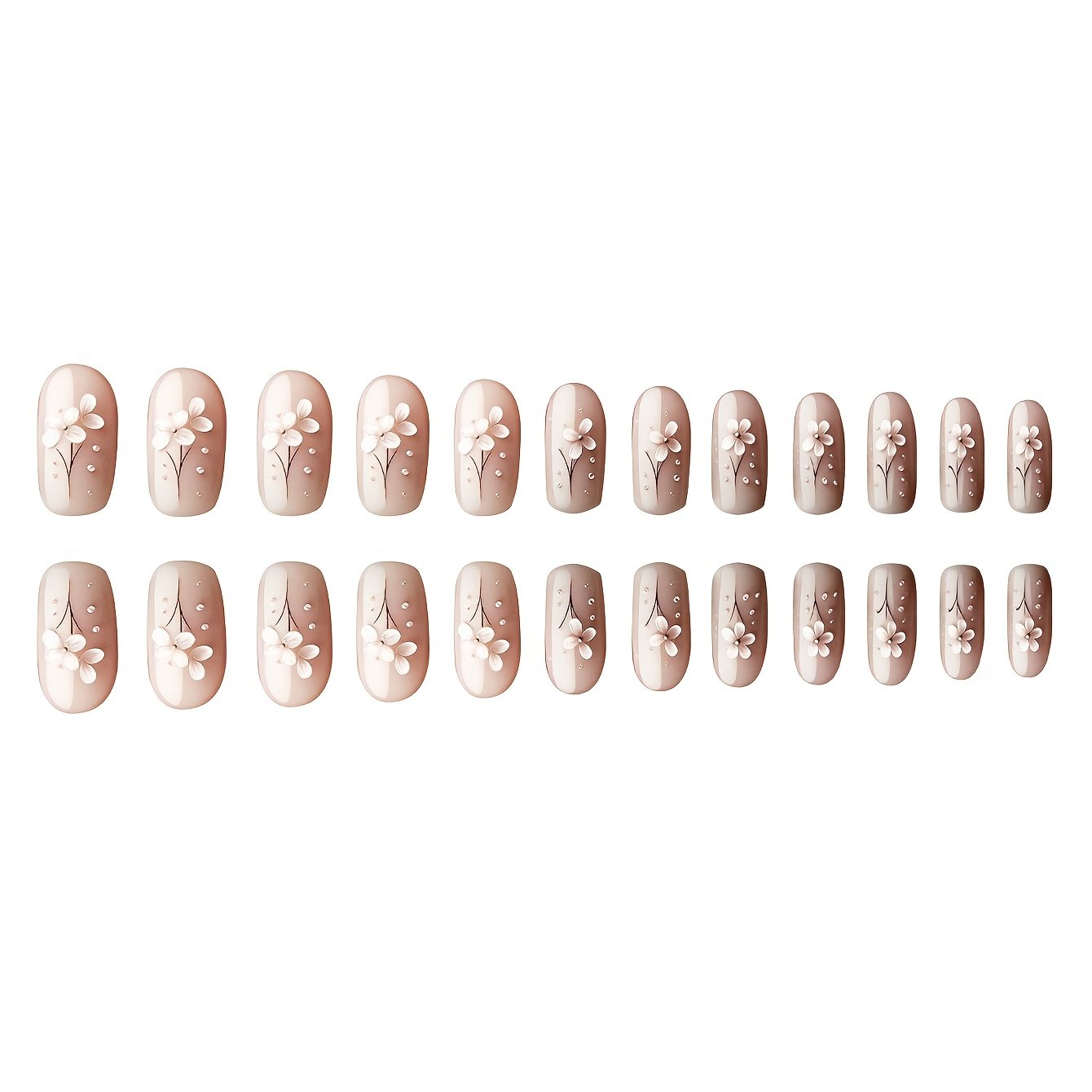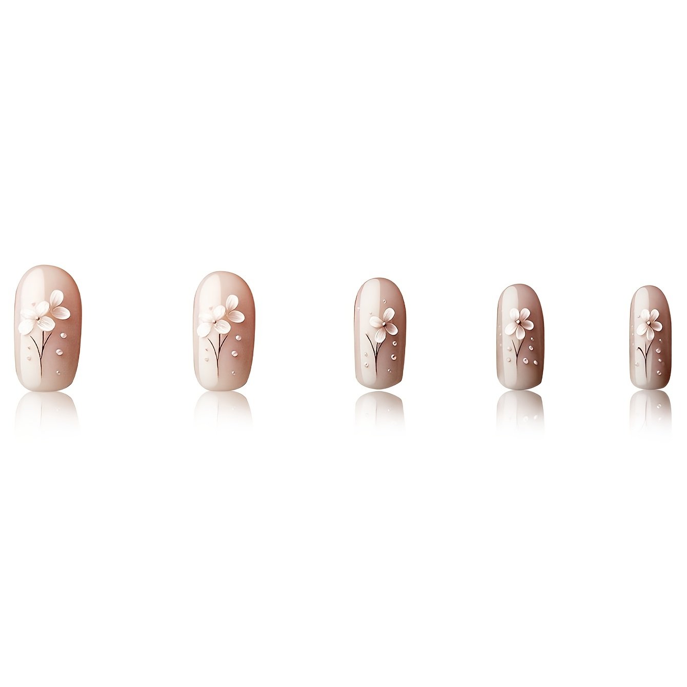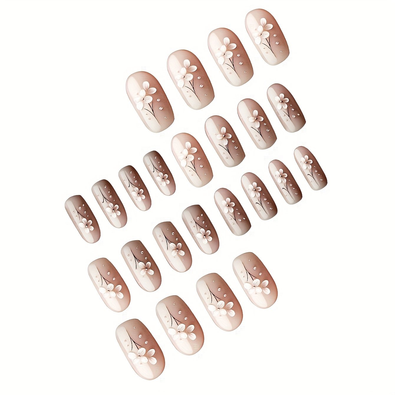 - تصميم فريد وجذاب: تتميز هذه المجموعة بتصميم مربع قصير أنيق، مزين بنقوش زهور رقيقة وتفاصيل لؤلؤية ساحرة، كل ذلك ضمن درجات البني الدافئة التي تضفي لمسة من الرقي والجاذبية الفائقة.