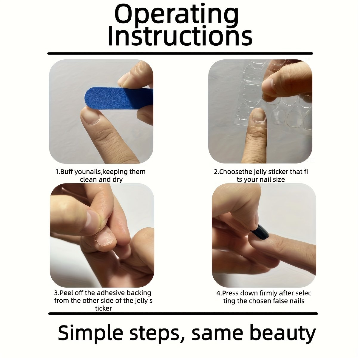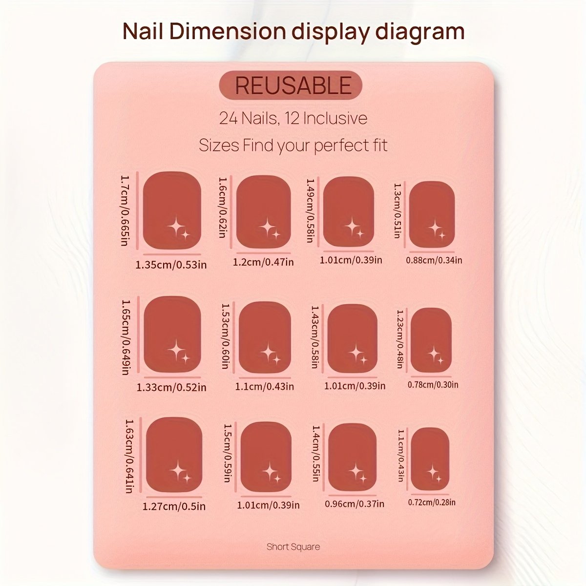 - سهولة فائقة في التركيب: وداعًا لانتظار صالونات التجميل! تأتي المجموعة كاملة مع 24 ظفرًا بأحجام متنوعة ومبرد أظافر وغراء جل خاص، لتتمكني من تركيبها بنفسكِ في ثوانٍ معدودة وبكل سهولة.