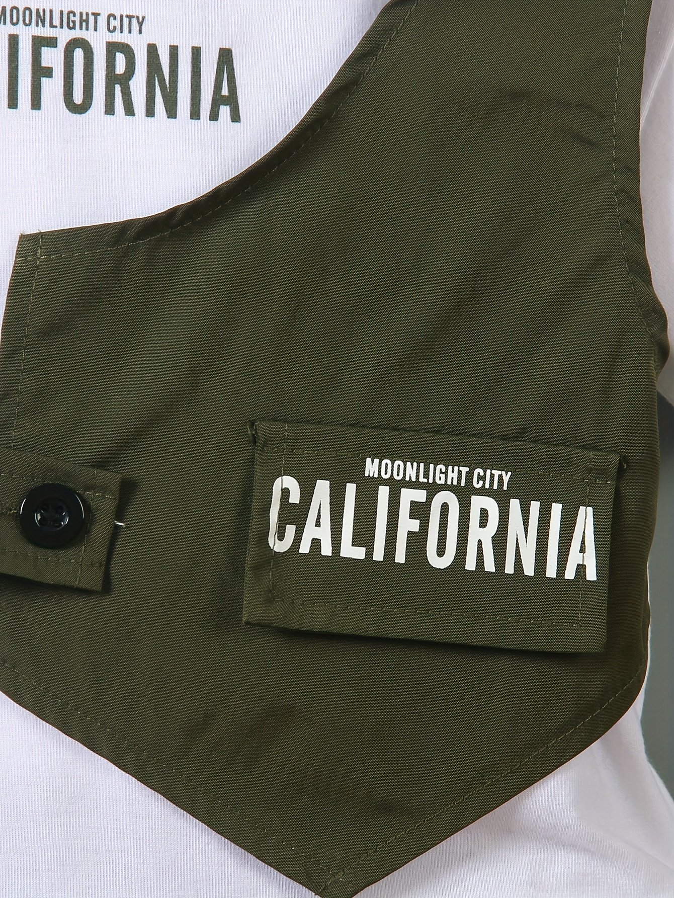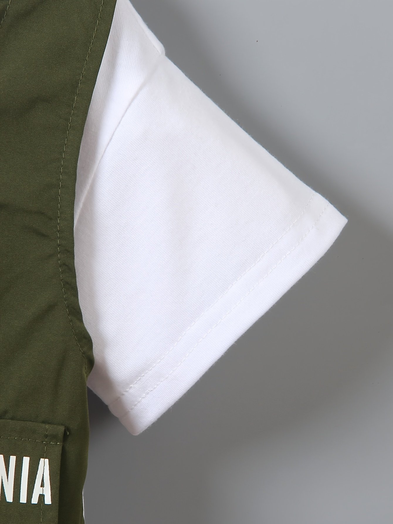 - تصميم عصري وجذاب: تي شيرت أنيق يتميز بتصميم وهمي من قطعتين على شكل سترة، يمنح مظهرًا طبقيًا مميزًا دون أي عناء، يتناسق بشكل مثالي مع شورتات عملية وعصرية لإطلالة متكاملة.
