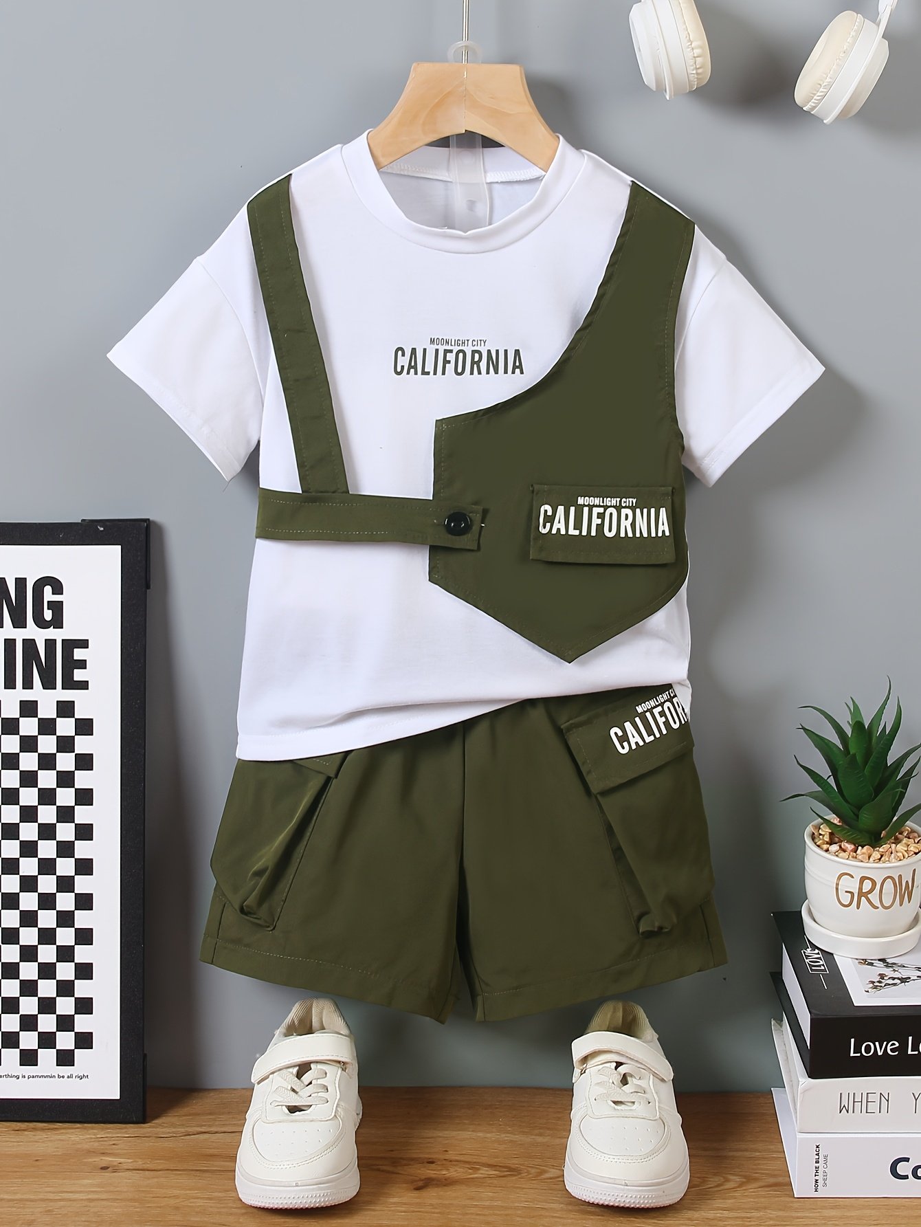 امنح صغيرك إطلالة عصرية ومريحة لا مثيل لها هذا الصيف! نقدم لكم طقم العمل الرائع، المصمم خصيصًا ليجمع بين الأناقة المطلقة والراحة الفائقة، مما يجعله الخيار الأمثل لمغامراته الخارجية وأيام اللعب المليئة بالحيوية. مع تصميم مبتكر وتفاصيل جذابة، سيكون صغيرك نجم الأناقة في كل مناسبة.