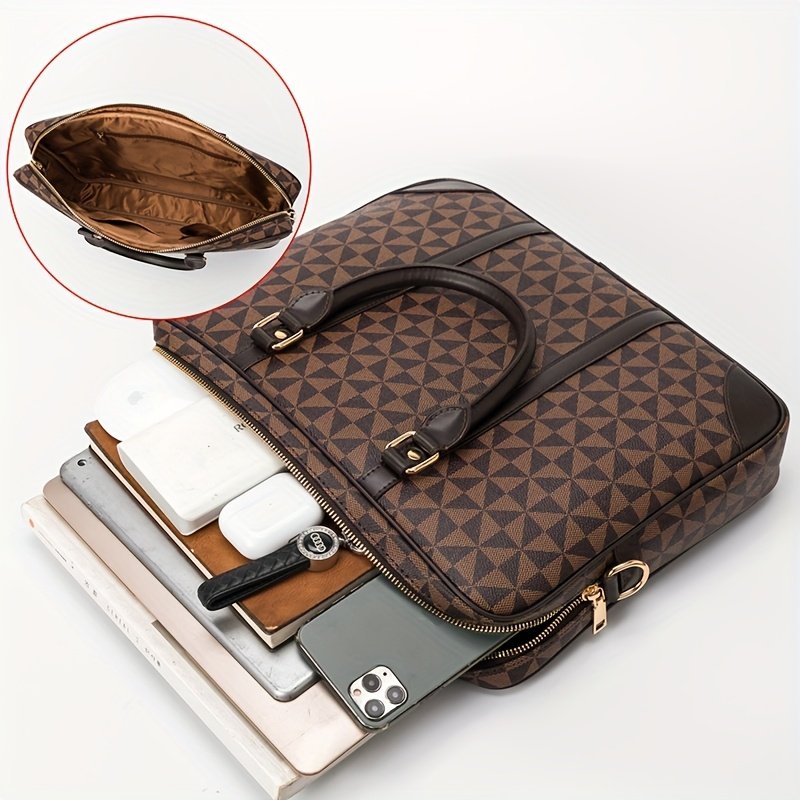 ارتقِ بإطلالتك المهنية وكن محط الأنظار مع حقيبة الأعمال المصممة خصيصاً لتلبي تطلعاتك في الأناقة والوظائف. هذه الحقيبة ليست مجرد إكسسوار، بل هي تعبير عن ذوقك الرفيع وحرصك على التميز في كل تفاصيل يومك. تجمع بين التصميم الهندسي العصري والراحة المطلقة، لتمنحك رفيقاً مثالياً في رحلتك نحو النجاح.