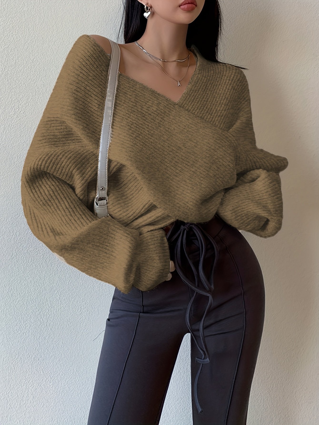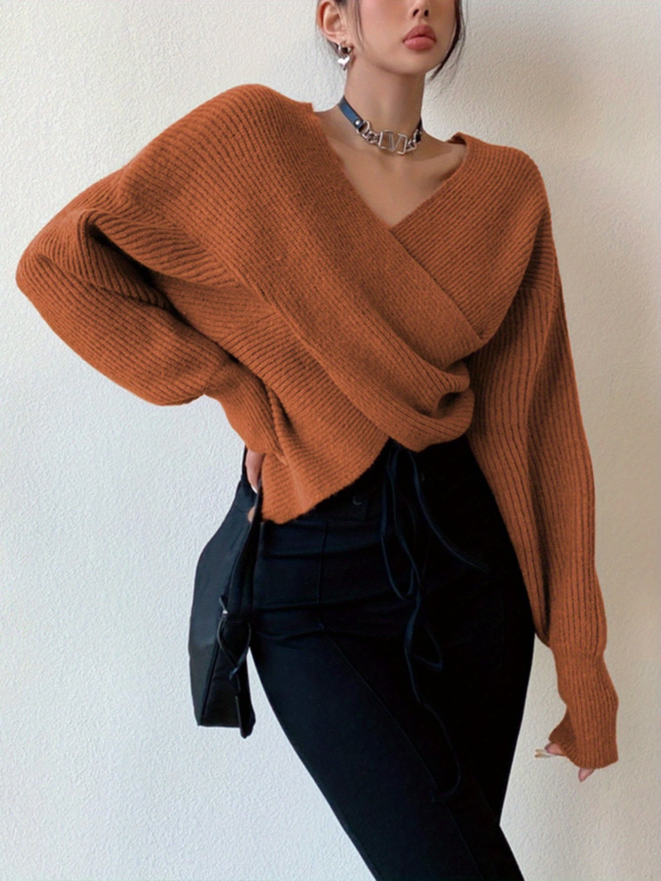- ياقة مبتكرة وجذابة: تصميم ياقة متقاطع ومميز يبرز جمال العنق ويضيف لمسة أنثوية ساحرة وجريئة، يجعلها قطعة مركزية في إطلالتك.