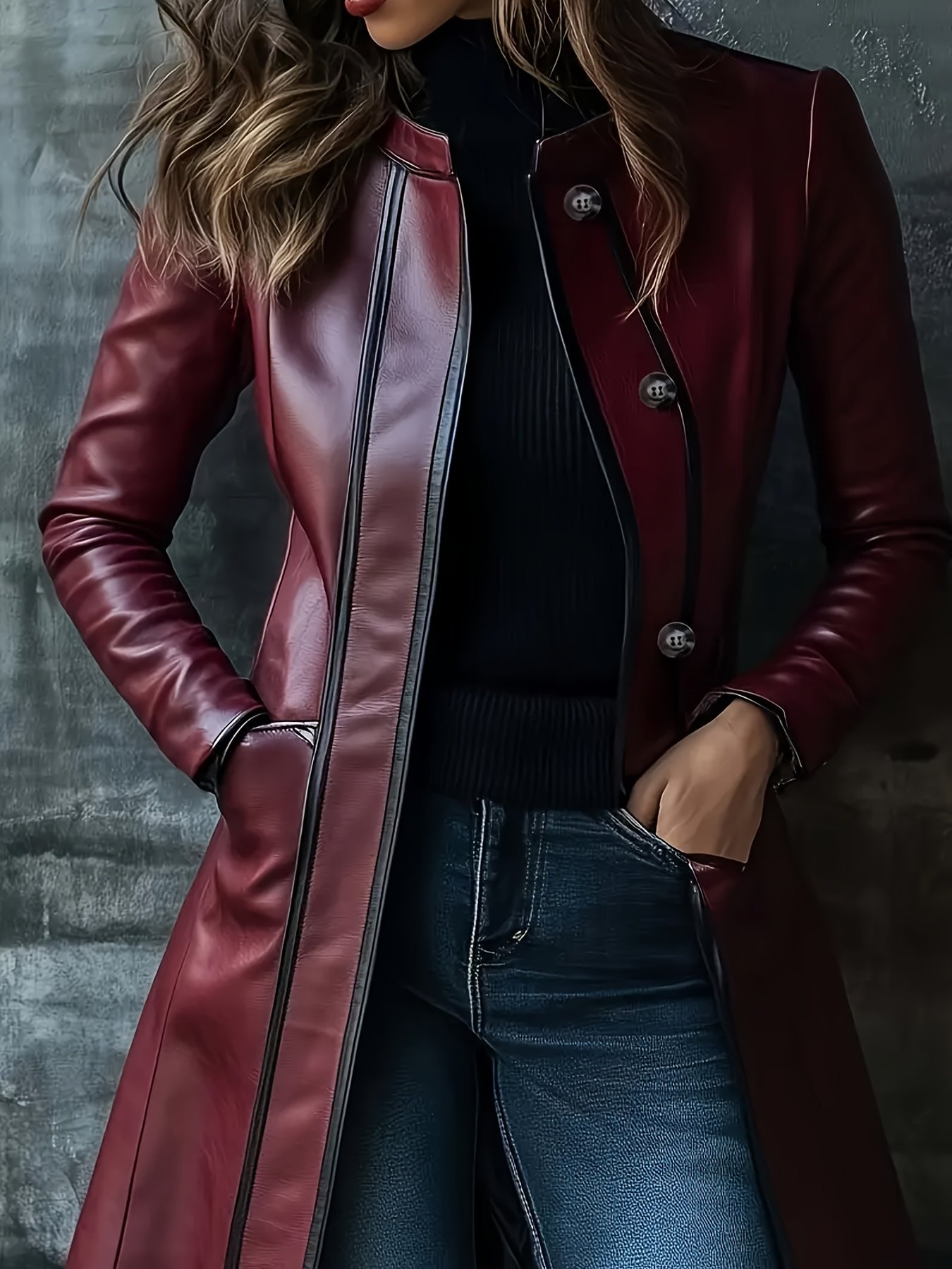 - خامة فاخرة ومريحة: مصنوع من مادة البولي يوريثان (PU) عالية الجودة، يمنحكِ مظهرًا جلديًا راقيًا وملمسًا ناعمًا، مع توفير الدفء والحماية اللازمين لأيام الخريف الباردة وليالي الشتاء القارسة.