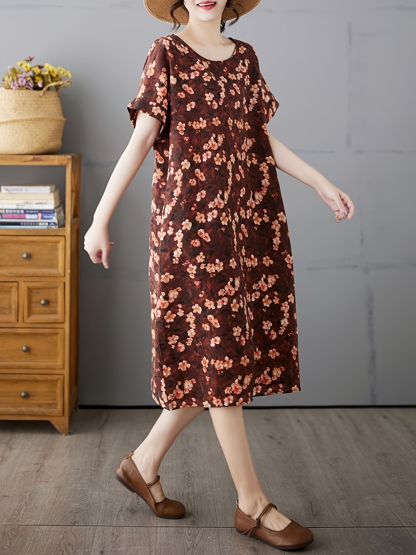 - تصميم بوهيمي ساحر: يتميز بنقوش عشوائية مطبوعة تضفي طابعًا فنيًا وحرًا، لتعكس شخصيتك المتفردة وذوقك الرفيع في اختيار الأزياء المريحة والأنيقة.