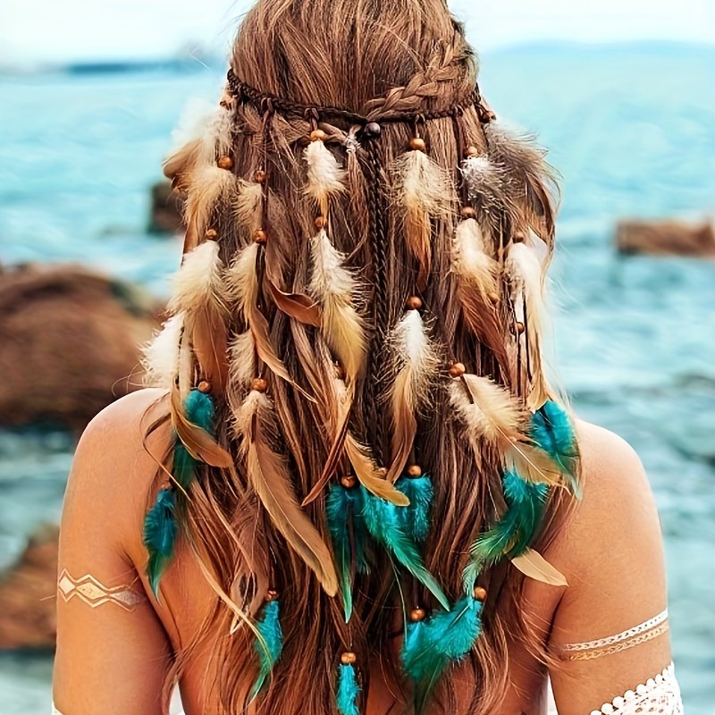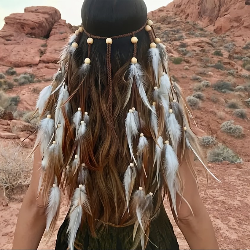 تألقي بلمسة من الأناقة الطبيعية والروح الحرة مع عصابة الرأس البوهيمية الفريدة هذه. صُممت لتضفي سحرًا خاصًا على إطلالتك وتجعلك محط الأنظار في كل مناسبة. دعي الريش الناعم والكتان الطبيعي يحكي قصة جمالك المتفرد بأسلوب لا يُضاهى.