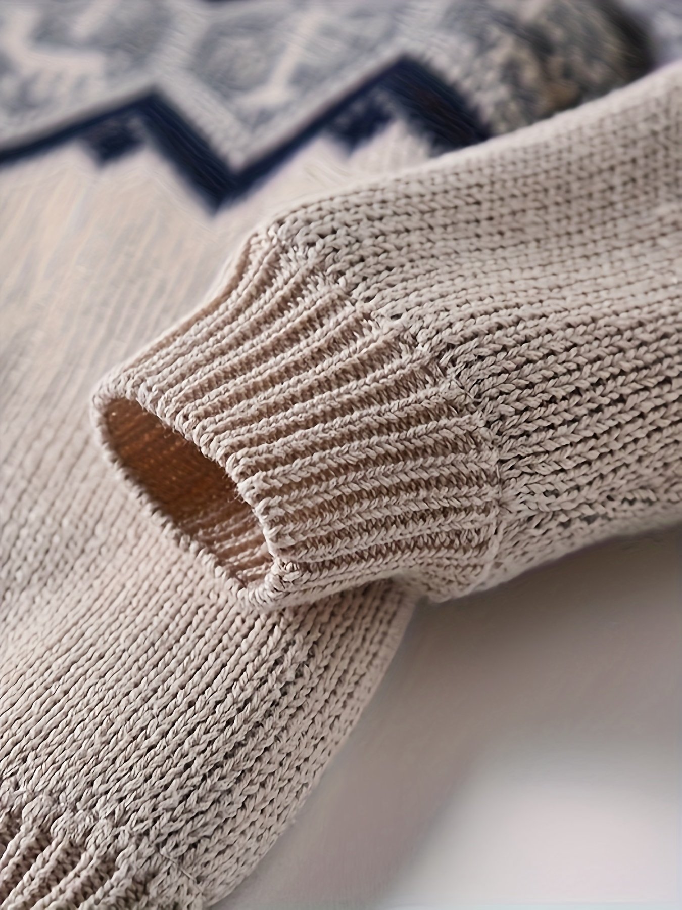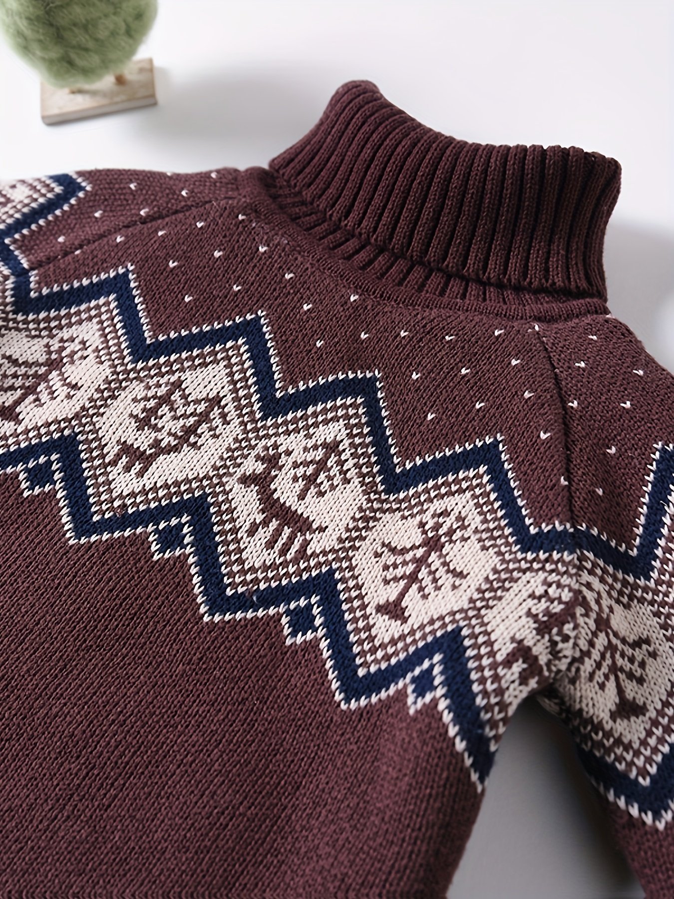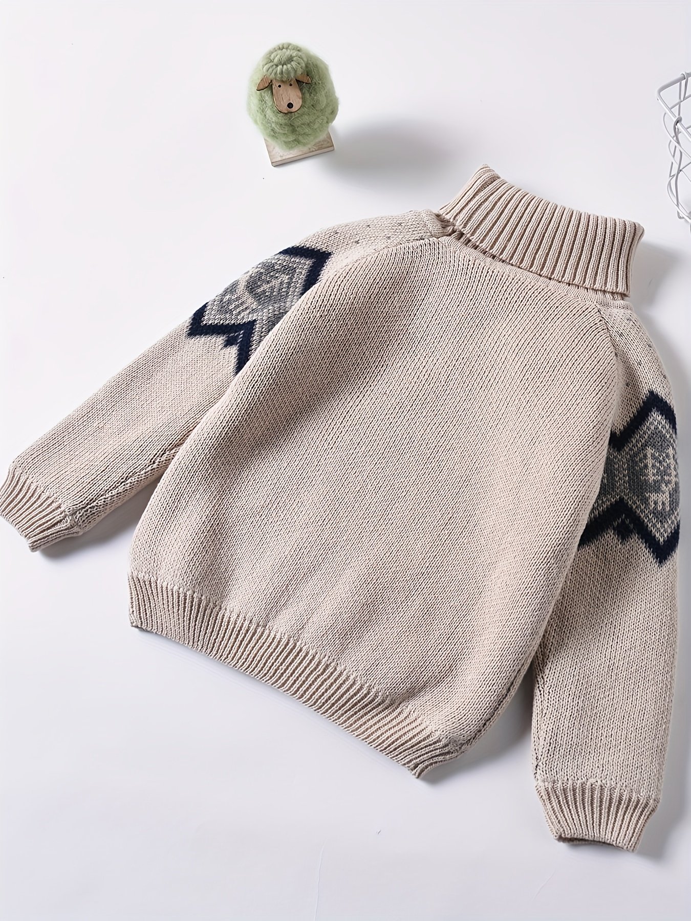 مع قدوم نسمات الشتاء الباردة، تبحث كل أم عن الدفء والأناقة التي تليق بصغيرها، وتضفي على أيامه بهجة وسروراً. نقدم لكم الحل الأمثل الذي يجمع بين الراحة الفائقة والتصميم الاحتفالي الساحر: سويتر الصبيان المحبوك ذو الرقبة العالية، رفيق صغيرك المثالي لموسم الأعياد وأيام الشتاء الباردة. اجعل طفلك يتألق بدفء وأناقة لا مثيل لهما!
