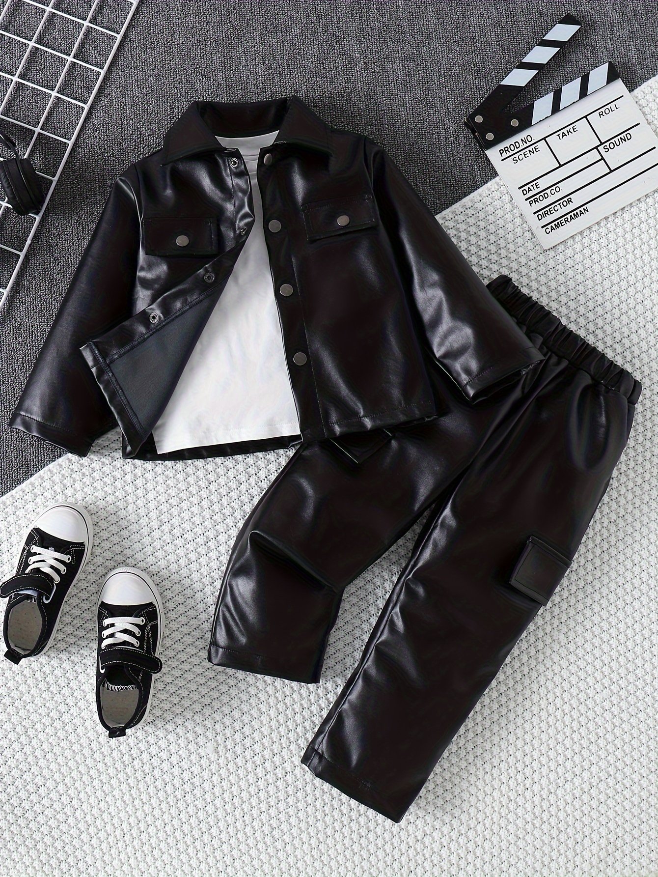 - الجودة الفائقة والمظهر العصري: مصنوع من الجلد الصناعي عالي الجودة ليمنح طفلك إطلالة جريئة وعصرية لا تُنسى، مدعوم بنسيج بوليستر داخلي يوفر الراحة والمتانة الفائقة طوال اليوم.