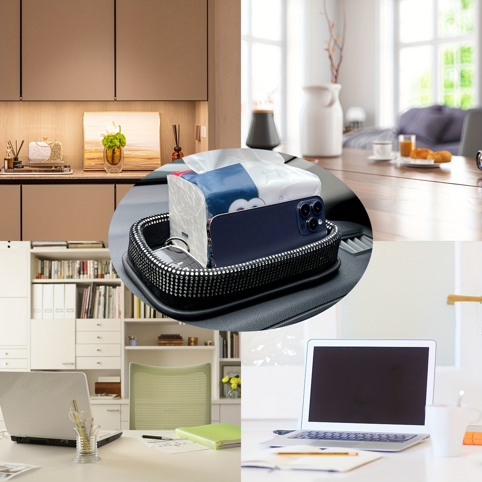 - متعدد الاستخدامات بامتياز: مثالي للاستخدام في كونسول السيارة أو على لوحة القيادة لتنظيم أغراضك أثناء التنقل، وكذلك كقطعة ديكور عملية على طاولات منزلك، مكتبك، أو في أي زاوية تحتاج لمسة من التنظيم والأناقة.