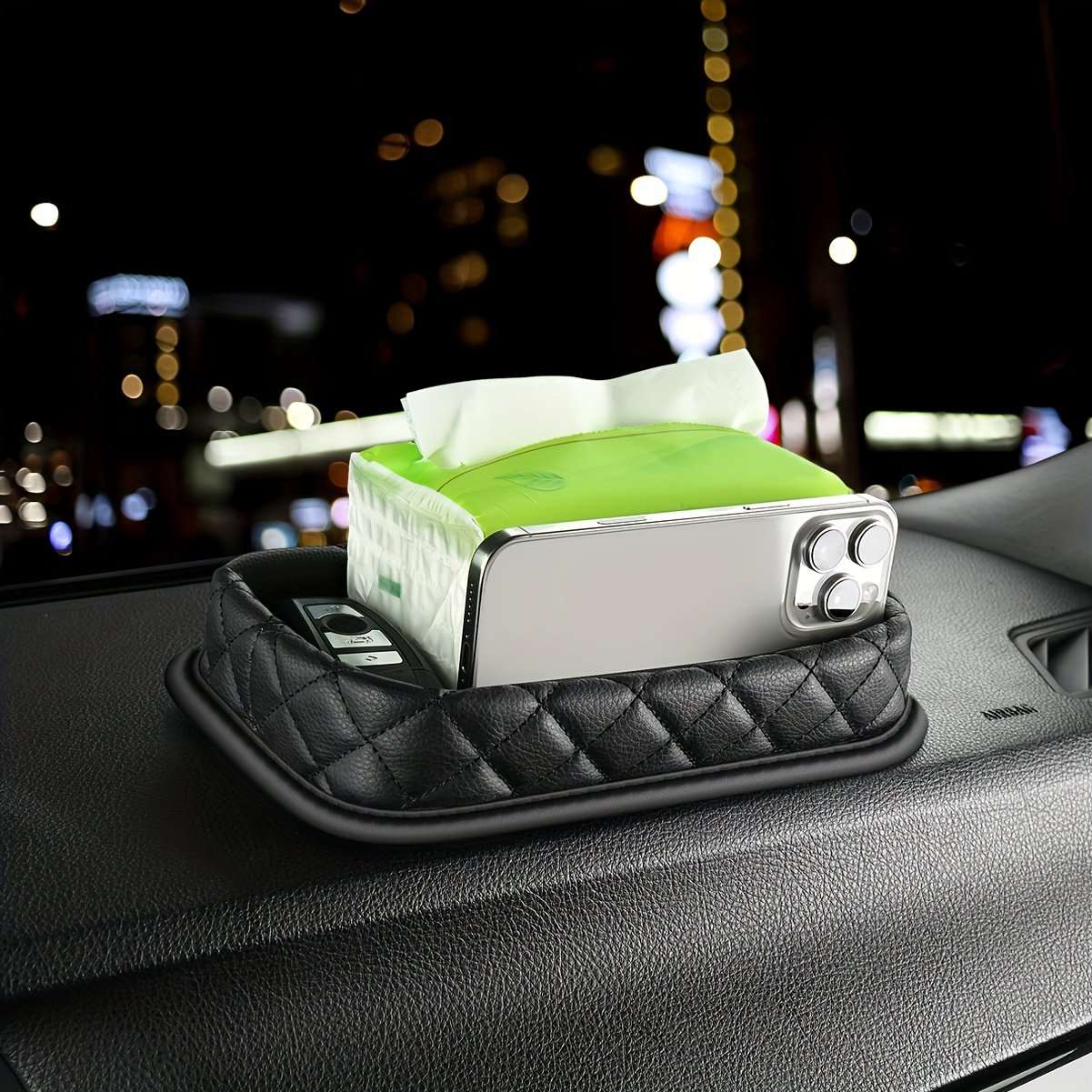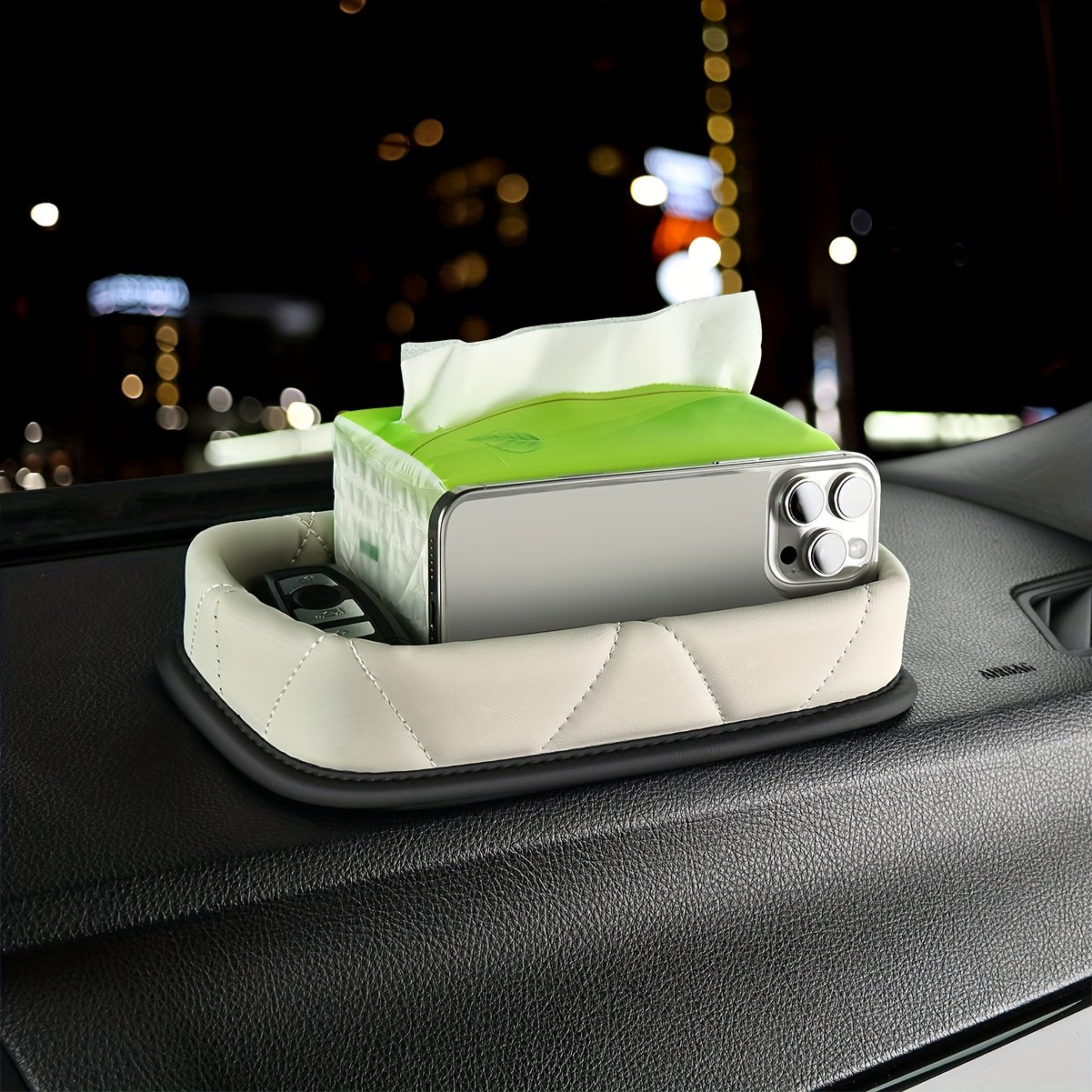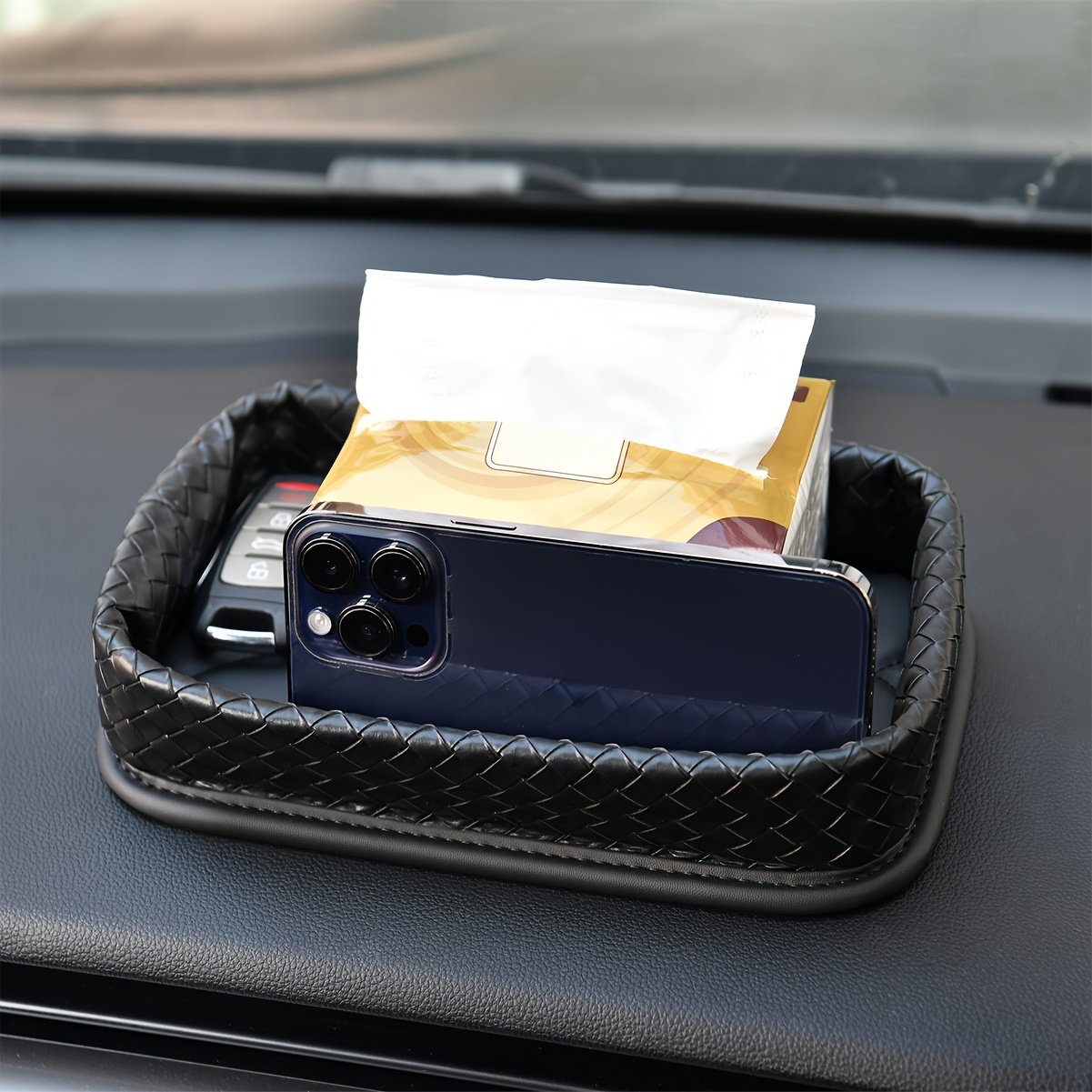 - تصميم عالمي يناسب جميع السيارات: تم تصميمه ببراعة ليتناسب بسلاسة مع لوحة القيادة في أي سيارة، مما يجعله الحل الأمثل لترتيب وتنظيم مقصورتك الداخلية بغض النظر عن طراز سيارتك.