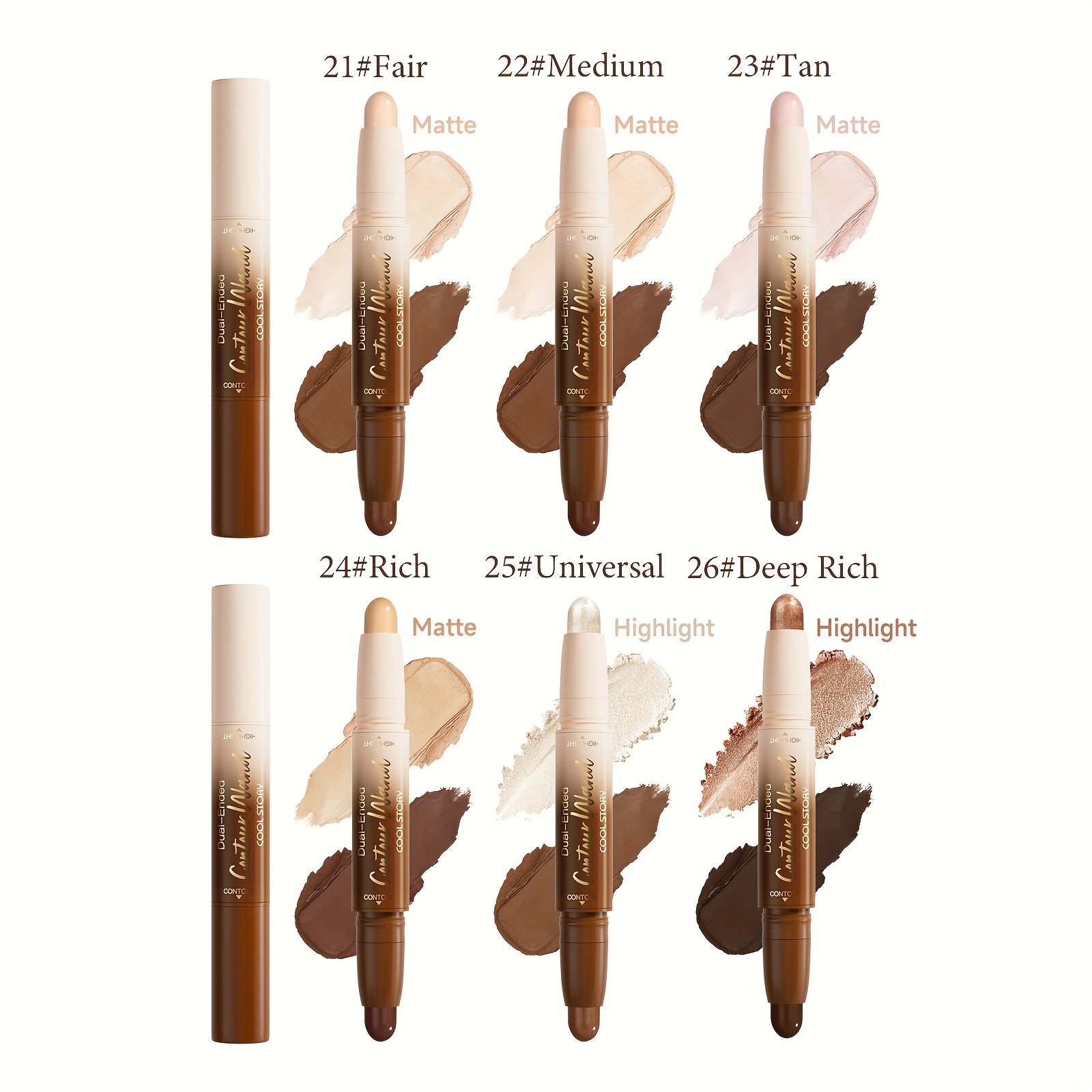 - القوة المزدوجة: تصميم مبتكر بعصا ثنائية الأطراف يجمع ببراعة بين خافي العيوب ومحدد الوجه (الكونتور) في منتج واحد مدمج وسهل الاستخدام. لا مزيد من البحث عن أدوات مختلفة!