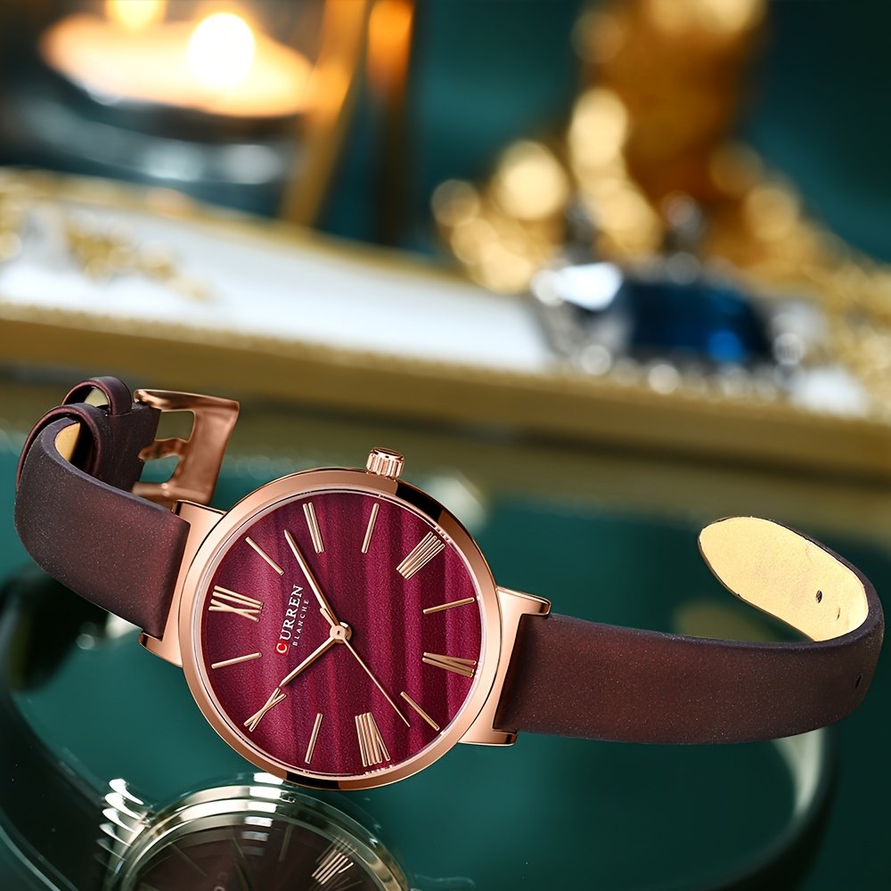 تألقي بلمسة من الأناقة الخالدة مع ساعة CURREN النسائية، تحفة فنية تجمع بين سحر التصميم العتيق ودقة الأداء العصري. ليست مجرد أداة لمعرفة الوقت، بل هي تعبير عن ذوقك الرفيع وشخصيتك المميزة. استعدي لجذب الأنظار وإبهار الجميع بأسلوبك الفريد الذي يمزج بين الماضي والحاضر بانسجام.