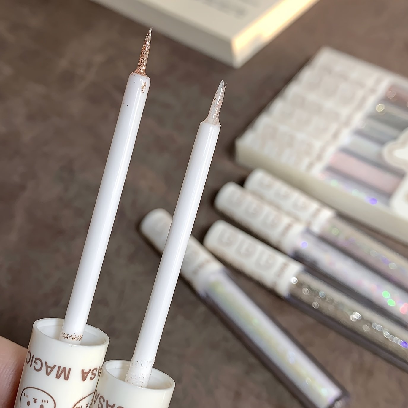 - تدرجات لونية آسرة: مجموعة غنية تضم من 5 إلى 8 ألوان ساحرة، مستوحاة من الأطياف الدافئة والعميقة، لتناسب كل إطلالاتكِ من النهار إلى المساء.