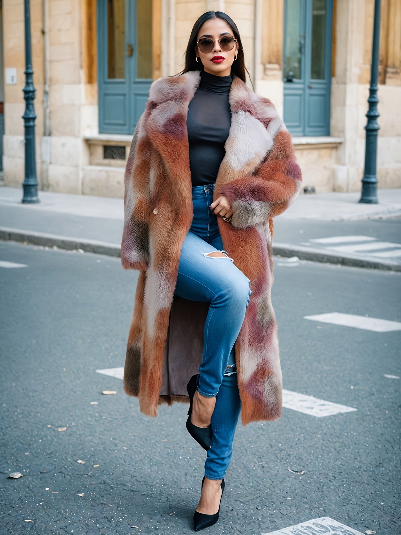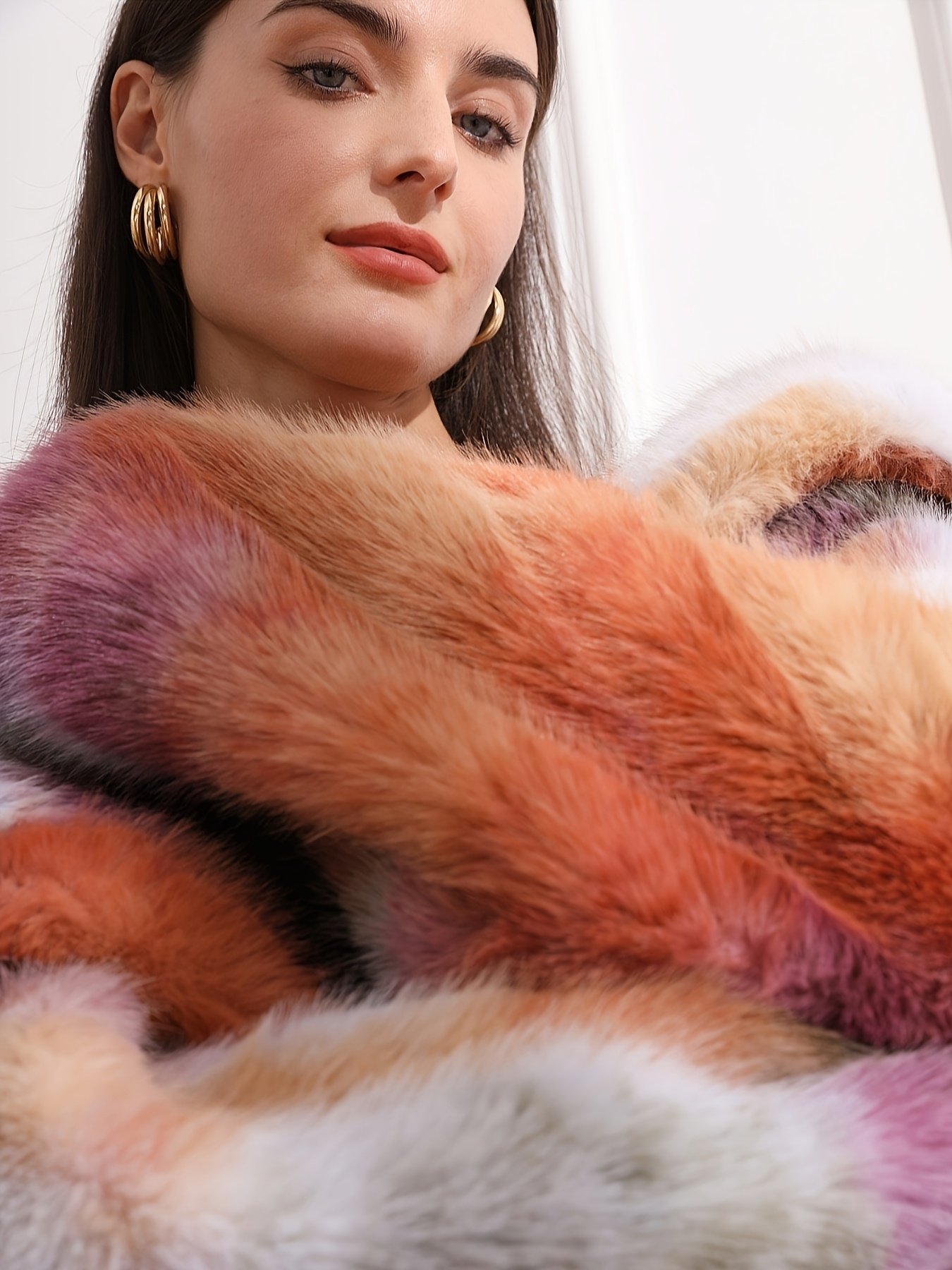 - ملمس الفرو الصناعي الناعم: مصنوع من البوليستر عالي الجودة ليمنحك إحساساً بالدفء والنعومة الفائقة، مما يضيف لمسة من الرقي والفخامة لإطلالتك الشتوية والخريفية.