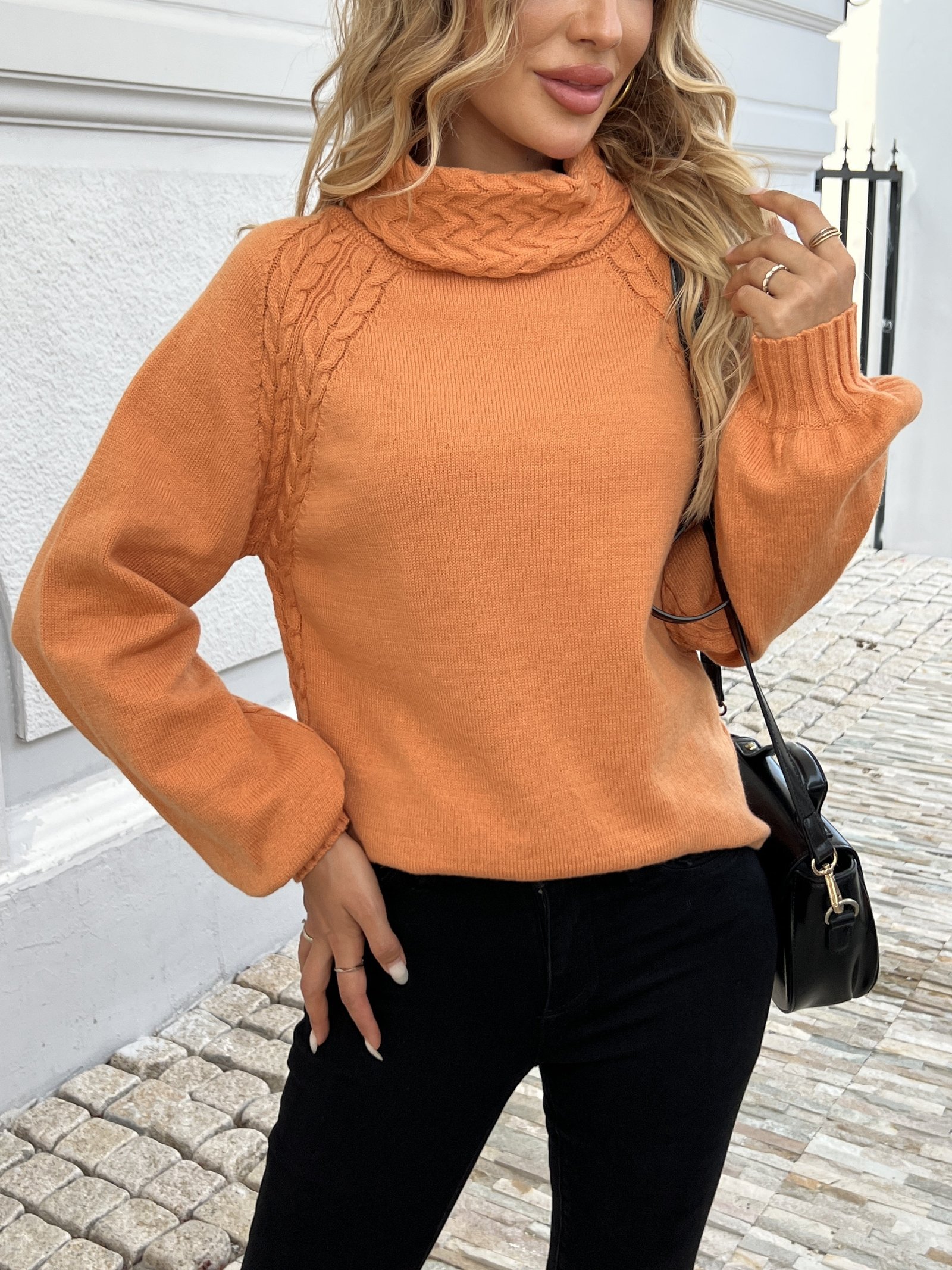 انغمسي في عالم من الدفء الفاخر والأناقة الراقية مع كنزة الرقبة العالية المصممة خصيصًا لتلبي تطلعاتك. قطعة فريدة تجمع بين الراحة المطلقة والمظهر الجذاب، لتضفي لمسة من الرقي على كل إطلالة وتجعلك محط الأنظار بأسلوبك المميز.