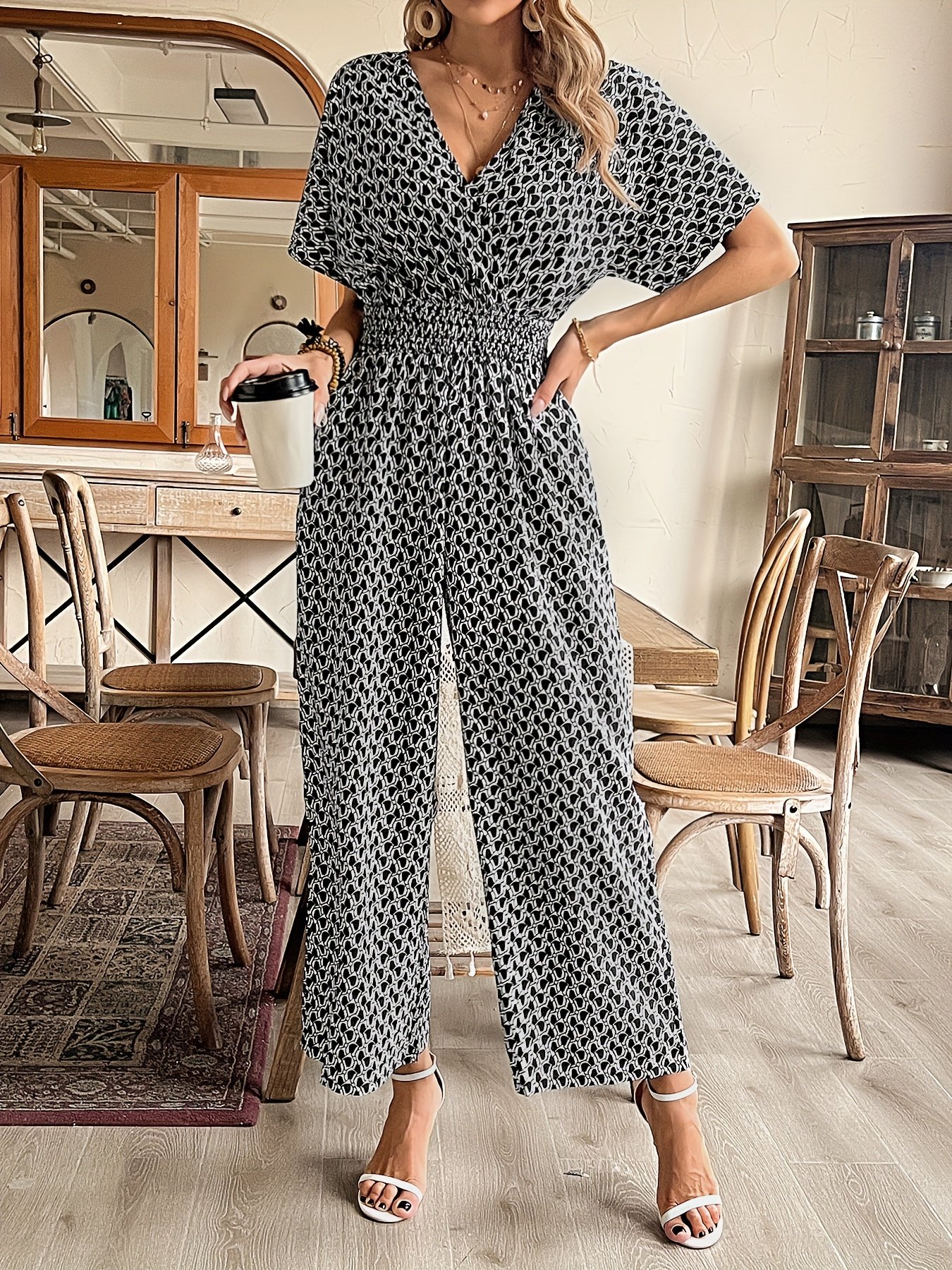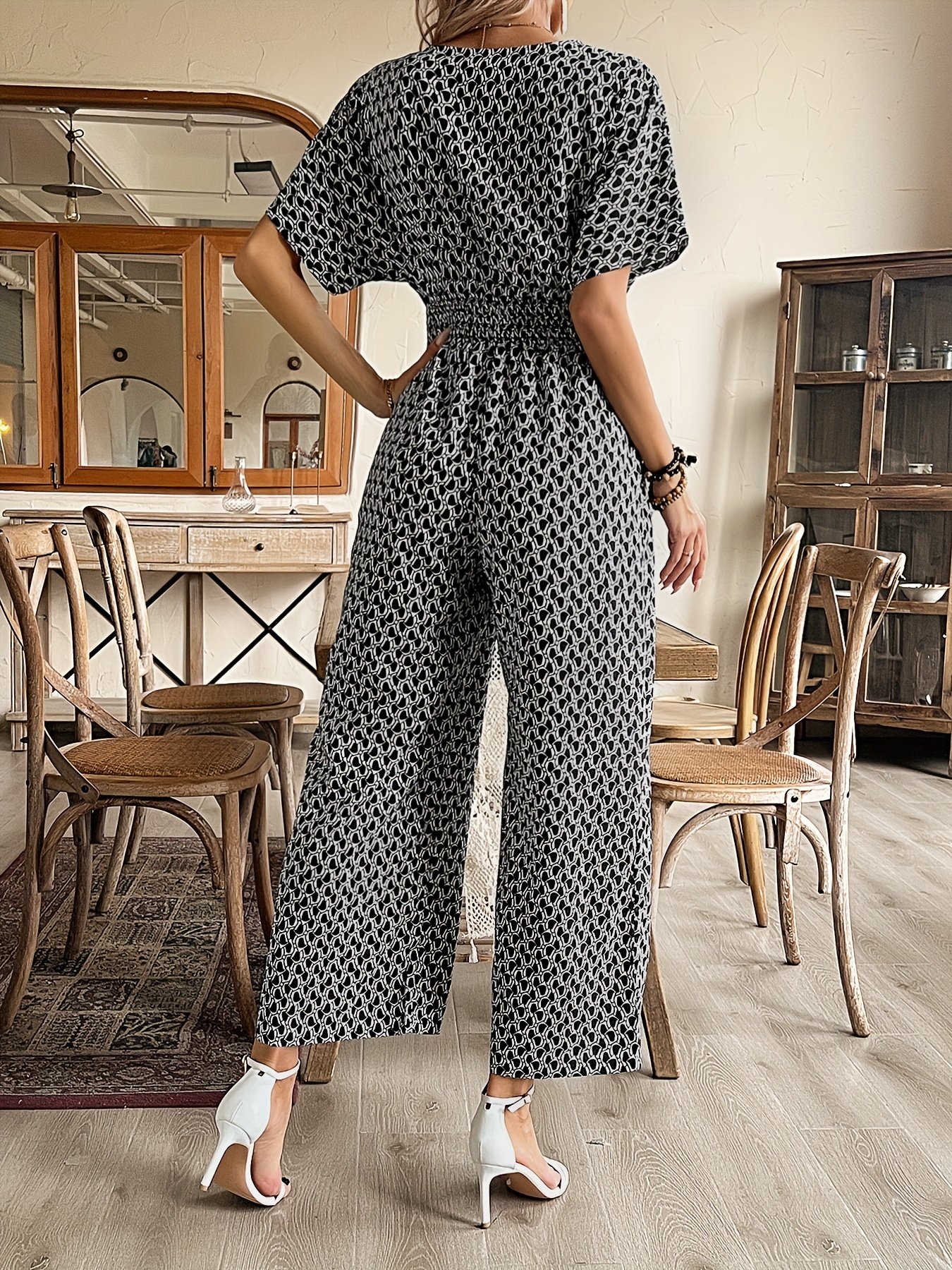 - تصميم فريد وجذاب: يتميز هذا الجمبسوت بنقوش هندسية عصرية مطبوعة بشكل عشوائي تضمن لكِ إطلالة متفردة وغير تقليدية تلفت الأنظار أينما ذهبتِ.