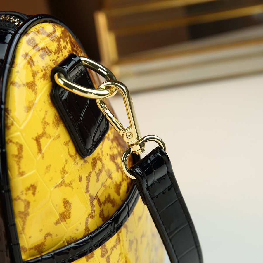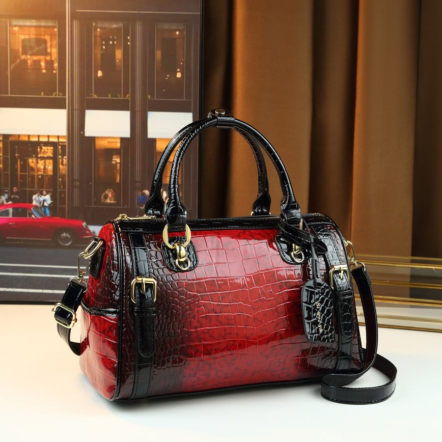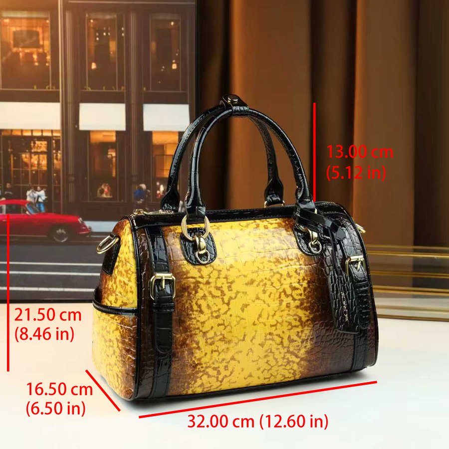 - تصميم فريد ونقشة عصرية: استمتعي بجمال نقشة التمساح المتدرجة الأنيقة، التي تضفي لمسة من الفخامة والتميز على إطلالتكِ بأسلوب هندسي مبتكر.