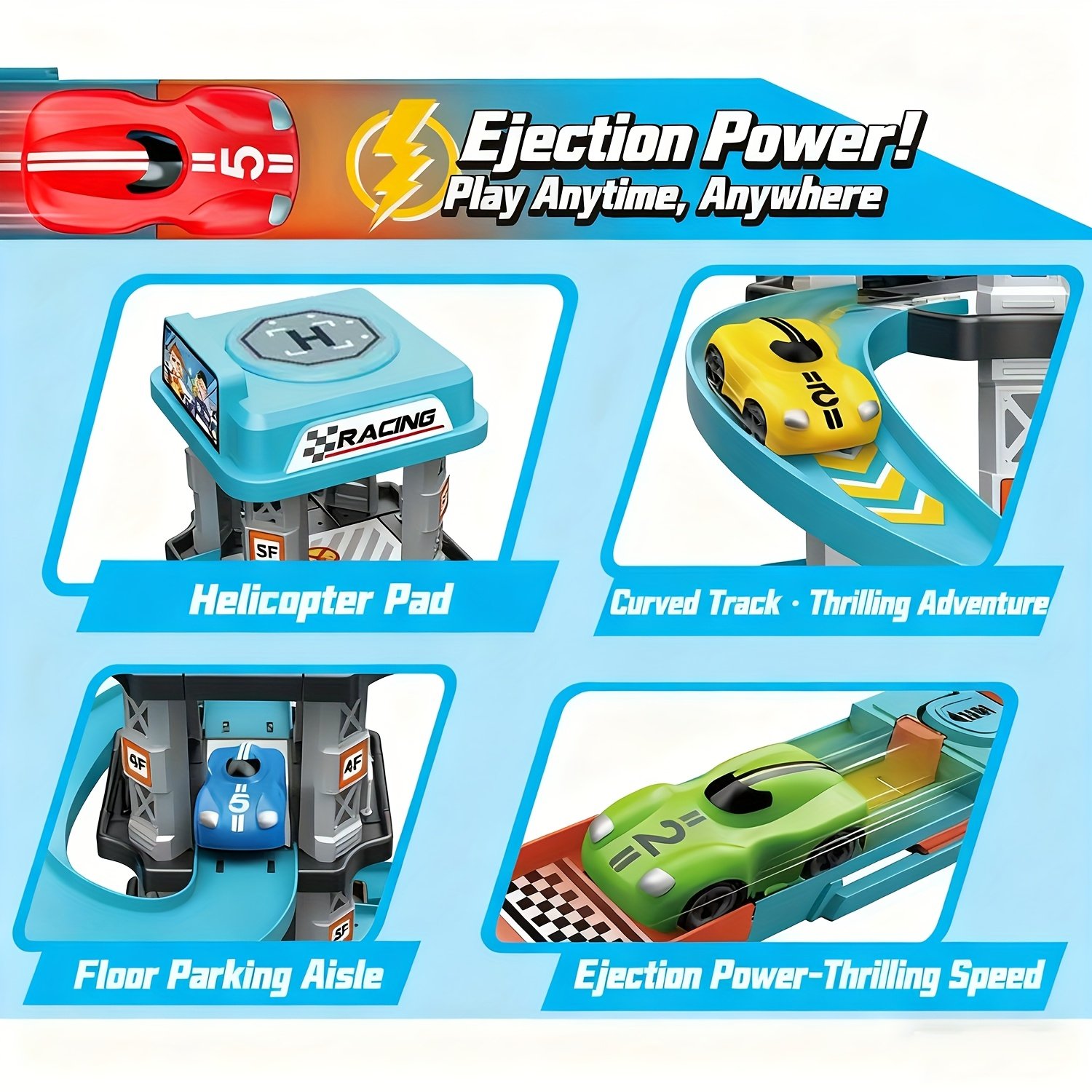 - قاذف السيارات المبتكر: أطلق السيارات بسرعة فائقة على المضمار باستخدام قاذف سهل الاستخدام، مما يضيف جرعة إضافية من الإثارة إلى كل سباق وتحدي.