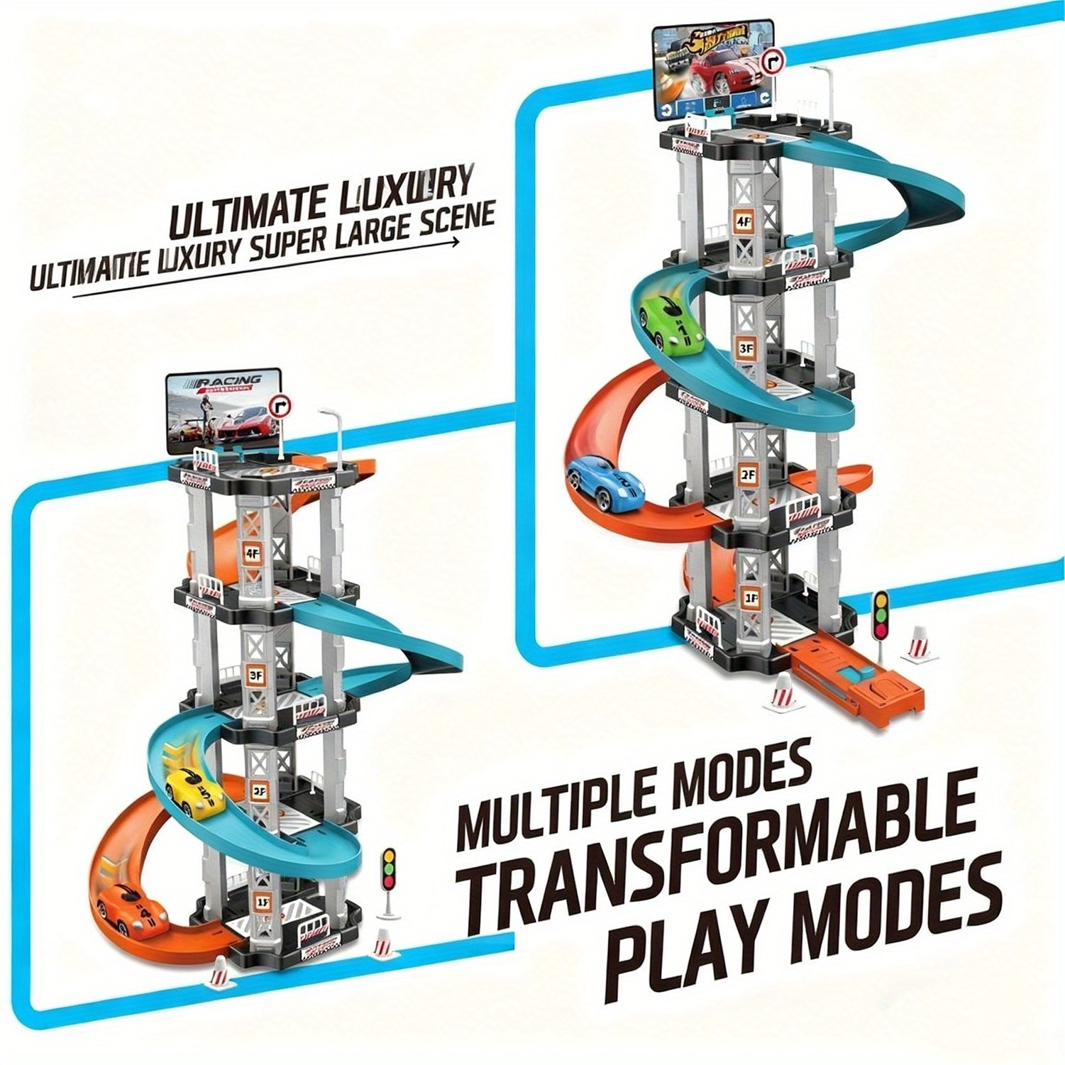 انطلق نحو عالم من الإثارة والمغامرات مع مضمار مواقف السيارات الخماسي الطبقات! هل تبحث عن الهدية المثالية التي تشعل خيال طفلك وتنمي مهاراته في آن واحد؟ هذا المضمار المذهل هو بوابتهم إلى ساعات لا تحصى من اللعب الممتع والإبداع. صُمم هذا المضمار ليقدم تجربة لعب غامرة، حيث يجمع بين التشويق التعليمي والمتعة التفاعلية، مما يجعله الخيار الأمثل للأبطال الصغار من عمر 3 سنوات فما فوق.