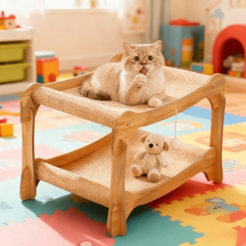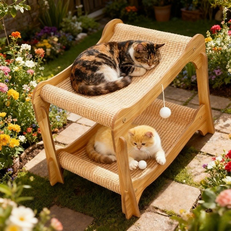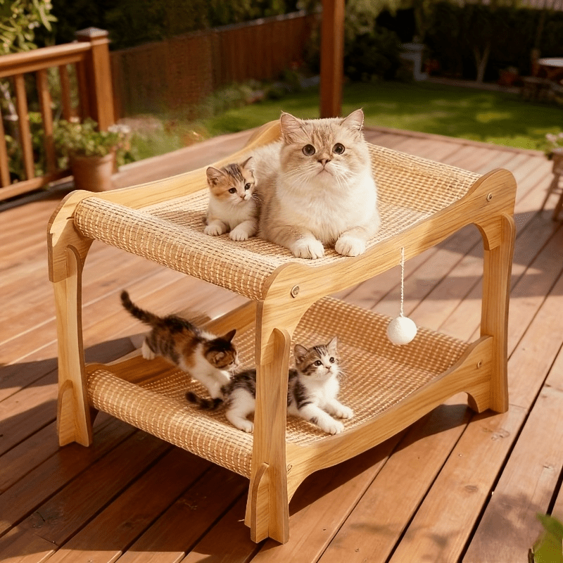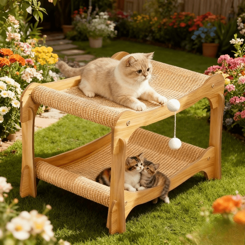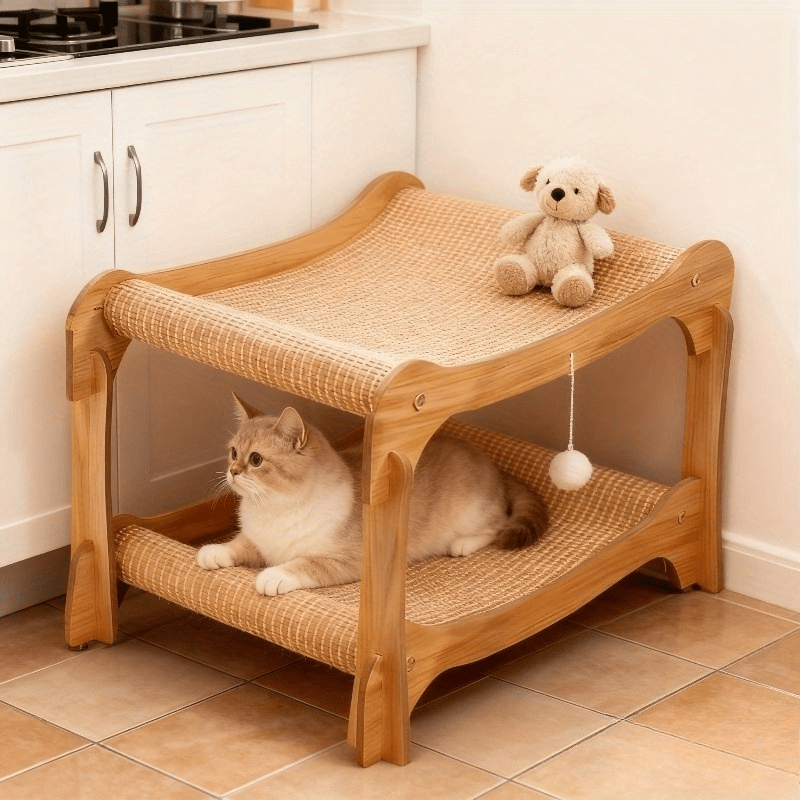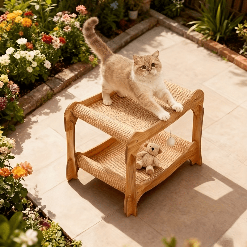 - خامات طبيعية فاخرة ومتينة: مصنوع بالكامل من حبال السيزال الطبيعية عالية الجودة، يوفر السرير سطحاً مثالياً لبرد مخالب قطتك بشكل طبيعي وآمن، بينما يضمن متانة استثنائية ومقاومة للتآكل ليدوم طويلاً.
